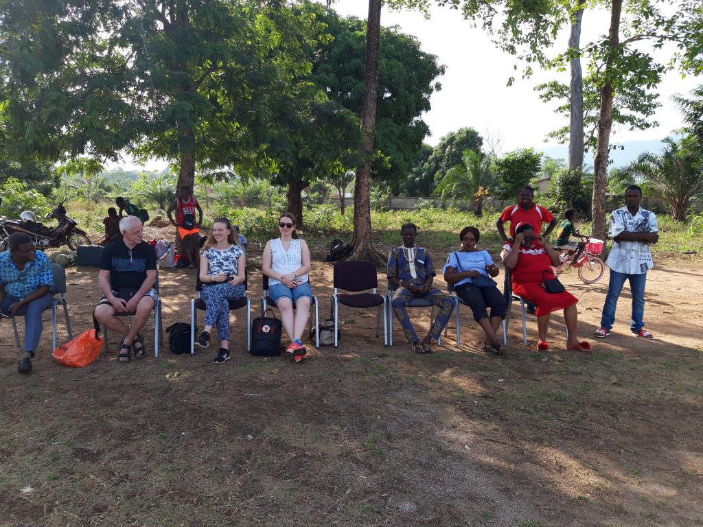 Zum Abendessen haben wir Schwester Silvana und Schwester Eme von den Schwestern der heiligen Clara ins Macumba eingeladen. Zum Weltfrauentag bringen sie für uns Frauen jeweils einen schönen afrikanischen Stoff mit. Wir erleben einen fröhlichen Abend, gepaart mit ausführlichen Diskussionen vor allem über das Gesundheitssystem in Togo und die Arbeit der Schwestern in Kpime. Zum Abschluß bedanken sie sich nochmals für unsere Unterstützung mit Hilfsgütern aus dem Container und ganz besonders für den Sozialfond, mit dem sie besonders Bedürftige behandeln können. Wir haben noch 3 große Kartons mit Bettwäsche, Handtüchern und Verbandsmatrial hergerichtet und geben diese den Schwestern mit. Wir versprechen bei unserer Reise im November, wieder nach Kpime zu kommen. Da es selbst am späten Abend immer noch sehr heiß ist lassen wir den Abend in der Straßenbar beim Nachbarn ausklingen.