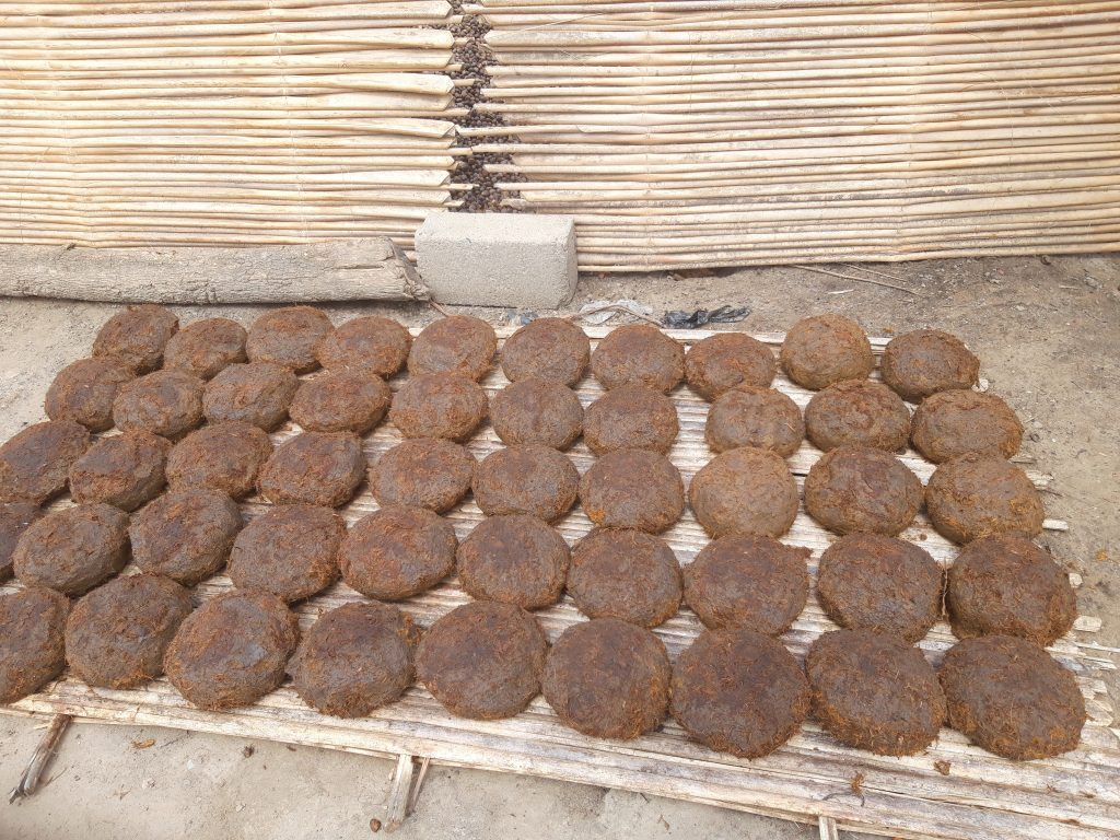 Die fasrige Masse wird zu tellergroßen Kuchen geformt, die man nach dem trocknen zum anzünden von Kochfeuern verwendet.