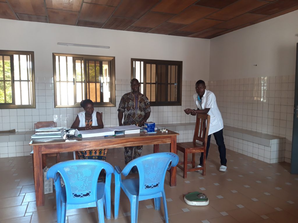 Die meisten Patienten kommen weil sie an Malaria erkrankt sind. Hier beginnt die Krankheitswelle erst mit der Regenzeit. Täglich müssen sie Patienten weg schicken, weil sie nicht in der Lage sind die Kosten zu bezahlen. Notfälle können durch unseren Sozialfond trotzdem behandelt werden. Dann wird der Gesundheitspass einbehalten, bis die Patienten das Geld gebracht haben. Bei einem Durchgang konnten wir uns davon überzeugen, dass es in den Räumen sauber ist und die notwendigsten Medikamente und Materialien vorhanden sind. Vieles davon kommt aus unseren Containern. Die Patienten werden von einer Hebamme, einem Krankenpfleger und einem Krankenpflegeschüler betreut.
