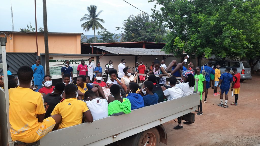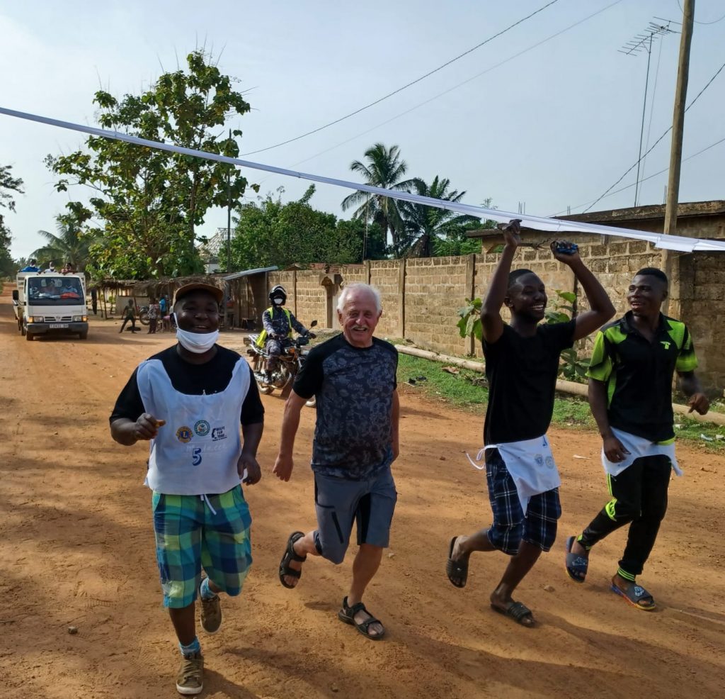 Entstanden ist die Aktion durch einen geplanten Benefizlauf der Lionsclubs in Österreich, der im April stattfindet. Über Internet kann sich weltweit jeder an dem Lauf anmelden und teilnehmen. Der Erlös durch Startgelder und Sponsoren für jeden gelaufenen Kilometer wird für verschiedene soziale Projekte verwendet. Unter anderem auch für Projekte in Togo. Hubert von den Sierninger Lions in Österreich, hat uns gefragt, ob bei den Azubis im ABCN evtl. Bereitschaft besteht an dem Lauf teil zu nehmen. Bei Victorin und Leon sind wir sofort auf offene Ohren gestoßen. Wir haben dann beschlossen den Lauf in Togo vor zu ziehen und bei unserem Togo-Aufenthalt zu veranstalten. Da es morgens noch relativ kühl ist wurden die Teilnehmer bereits um 6.00 Uhr mit dem LKW vom ABCN zum Startpunkt gefahren.