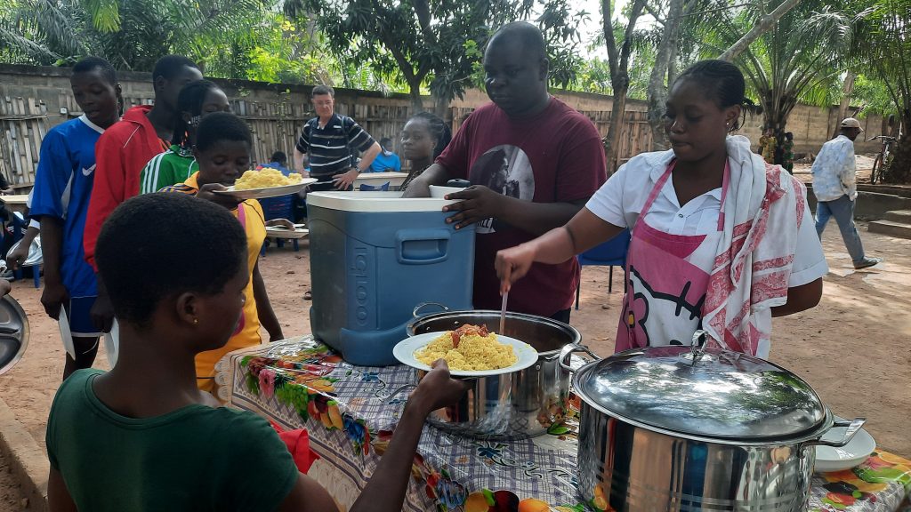 Inzwischen bekamen wir auch von unserer Praktikantin Anna die Nachricht, dass sie Covid Negativ ist und endlich nachreisen kann. Sie wird am Dienstag fliegen. Nach einem Telefonat mit ihr organisieren wir gleich den Covid Test, den sie bei der Ankunft in Togo machen muss. Außerdem muß jemand gefunden werden, der sie am späten Abend am Flughafen abholt und es muß eine Übernachtungsmöglichkeit in Lome organisiert werden. Nach einem anstrengenden, sehr heißen und schwülen Tag freuen wir uns auf ein kühles Lager auf der Veranda unseres Hotels und lassen dort wie jeden Abend den Tag ausklingen.