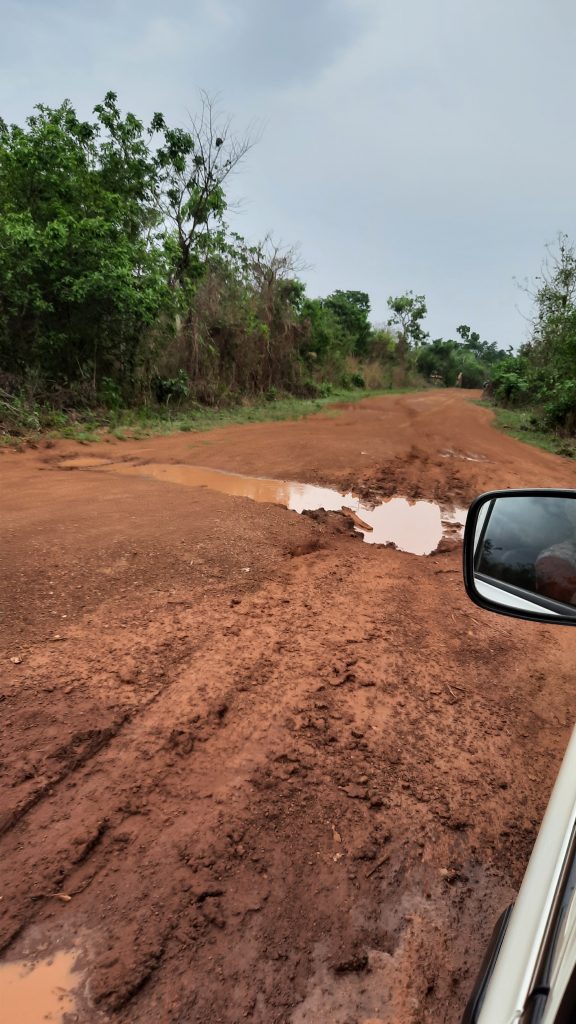 Da wir schon in der Region Agou sind wollen wir noch zu einem Aufforstungsprojekt in der Region fahren. Die Straßenverhältnisse sind nicht sehr gut und es hat heute das erste Mal nach langer Zeit geregnet. Es ist also eine abenteuerliche Fahrt.