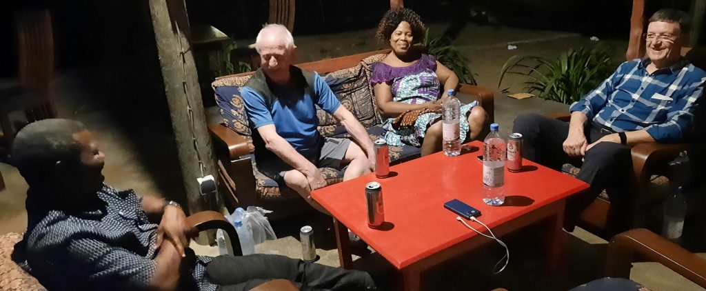 Leon hat extra einen Mitarbeiter vom Flughafen beauftragt uns durch zu schleußen und alles zu organisieren. Um 24.00 Uhr waren wir dann endlich im Hotel … alles dunkel… die Zimmerschlüssel wurden organisiert. Aber das Restaurant blieb geschlossen… es gab auch nichts zu trinken. Leon hat den Fahrer los geschickt um wenigstens Getränke zu organisieren… es gab dann warmes Wasser und warmes Dosenbier, das wir dann auf einer Terasse vor unseren Zimmern mehr oder weniger genossen haben.