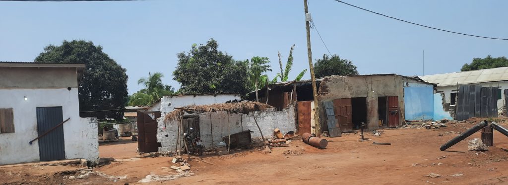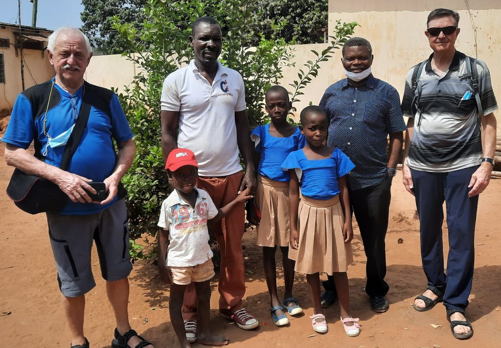 Anschließend haben wir die Koffer wieder verstaut und sind zu einer Familie in Lome gefahren. Der Vater mit seinen Kindern wohnt in der Nähe des Flughafen. Die Mutter der Kinder ist im BundesFreiwilligenDienst im Ostalbkreis. Bevor sie 2020 nach Deutschland kam hat sie in Togo einen Deutschkurs absolviert, den sie wie auch die Kosten für Visa, Flug usw. selbst finanzieren musste. Für die ganze Aktion hat die Familie einen Kredit aufgenommen und sich auch verschuldet. Nach der Ankunft in Deutschland hat die Frau ihre Arbeit als Bundesfreiwillige in einen Pflegeheim aufgenommen und hätte eigentlich einmal wöchentlich bei der VHS einen Deutschkurs absolvieren sollen. Da dann die Corona Pandemie begonnen hat, gab es bei der VHS keine Kurse mehr und die Frau konnte dann nach einem Jahr, die für eine Ausbildung zur Altenpflegerin geforderte Deutschprüfung nicht absolvieren. Ohne diese Deutschprüfung konnte sie die Ausbildung nicht beginnen. Von ihrem geringen Lohn, der eigentlich schon für sie selbst zu gering ist schickt sie jeden Monat noch Geld nach Hause. Seit drei Jahren hat sie ihre Familie nicht gesehen, da sie sich einen Flug nicht leisten kann. Wir wurden von engagierten Frauen von Solwodi Aalen angesprochen, da sie wissen, dass wir uns in Togo engagieren.