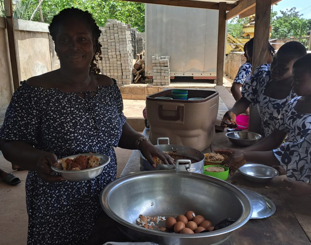Wir werden von der Köchin zum Essen eingeladen und Birgit, Stephan und ich teilen uns eine Portion. Sofort wird eine Schüssel organisiert in der wir uns die Hände waschen können und auch drei Löffel, denn die Lehrlinge essen normalerweise wie in Afrika üblich, mit den Fingern. Heute gibt es braunen Reis mit schwarzen Bohnen und Zwiebeln, dazu eine sehr scharfe Gemüse – Tomatensoße und ein gekochtes Ei – und es schmeckt wunderbar. Die Köchin freut sich sehr, daß uns ihr Essen so gut schmeckt.