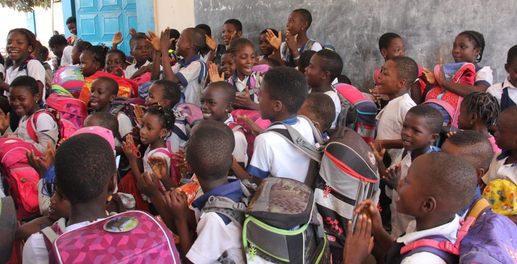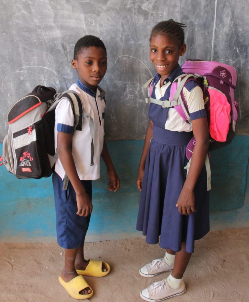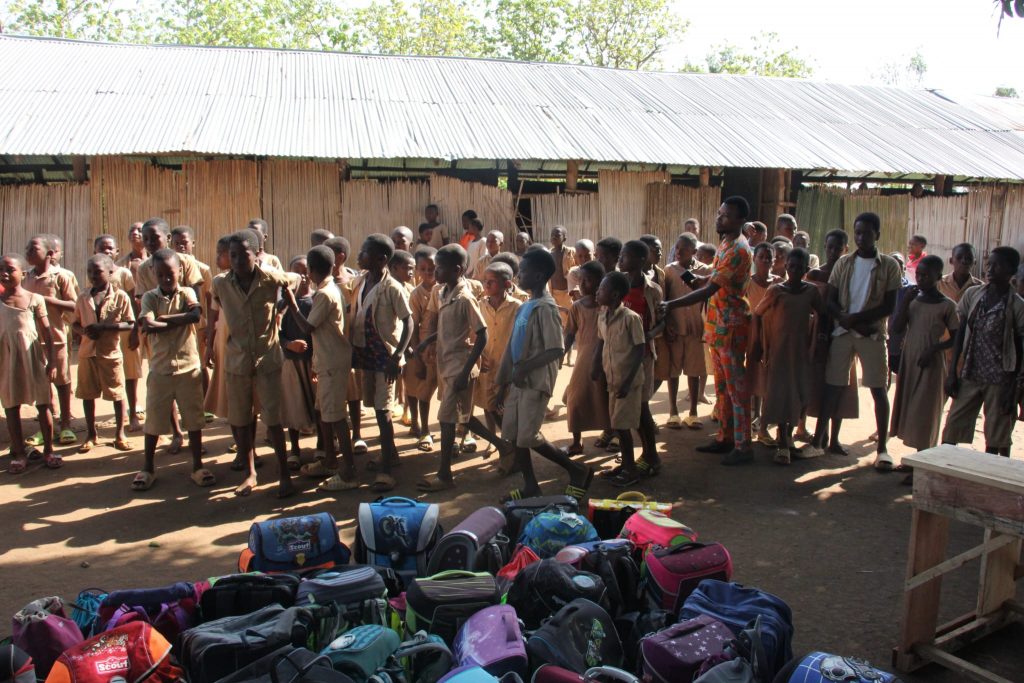 Bereits am Vormittag hat Victorin mit Maria und Firdaws Ranzen an mehreren Schulen verteilt, die im letzten Container mit nach Togo geliefert wurden.