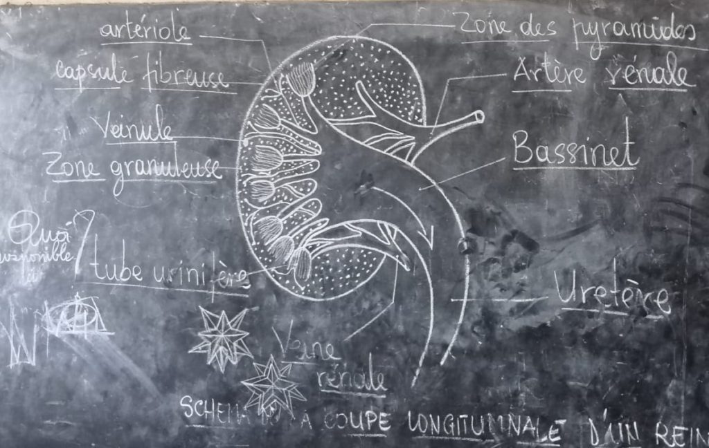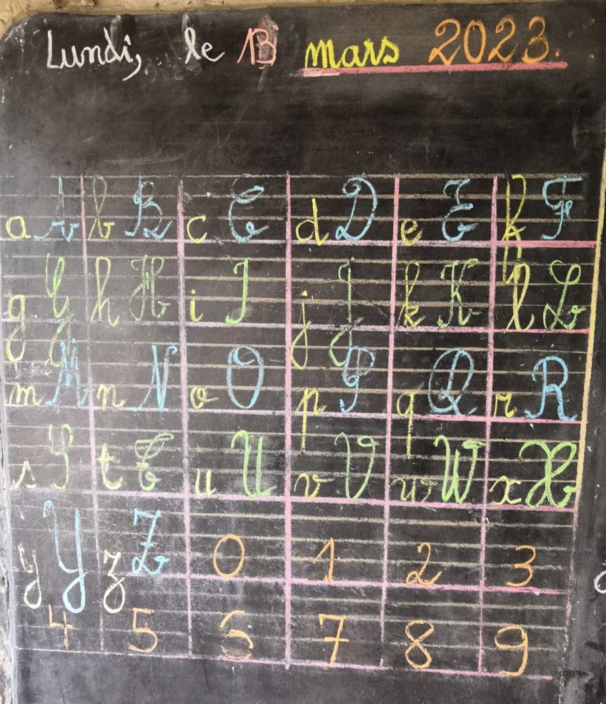 Grundsätzlich sind wir immer wieder begeistert, wie schön die Lehrkräfte auf den alten und oft sehr schlechten Tafeln schreiben und zeichnen und wie schön die Kinder das dann auch abschreiben und abmalen.