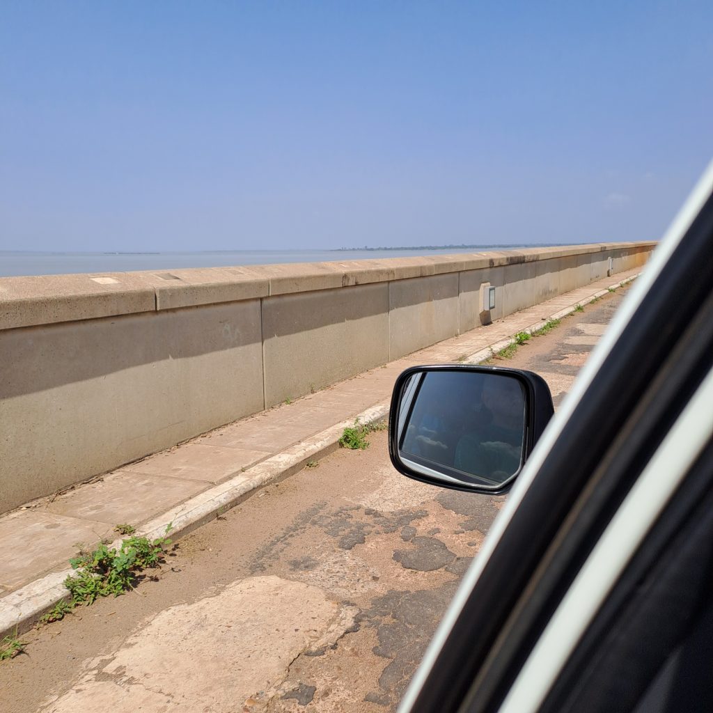 Es wird auch Zeit los zu fahren, denn zunächst geht es die knapp 85 km nach Atakpame. Auf dem Rückweg fahren wir wieder über den Nangbeto Staudamm. Er staut den Mono, den größten Fluß Togos und wurde 1987 seiner Bestimmung übergeben.