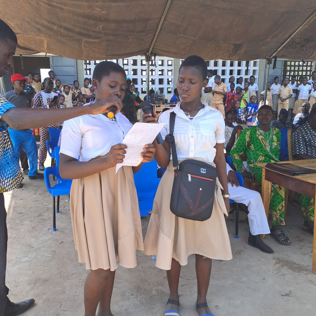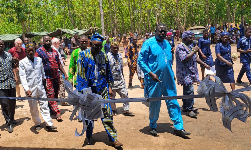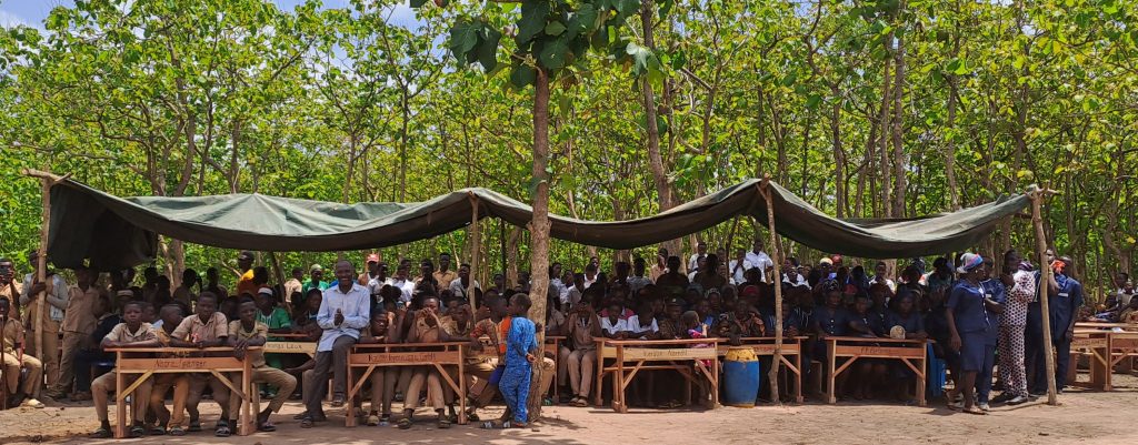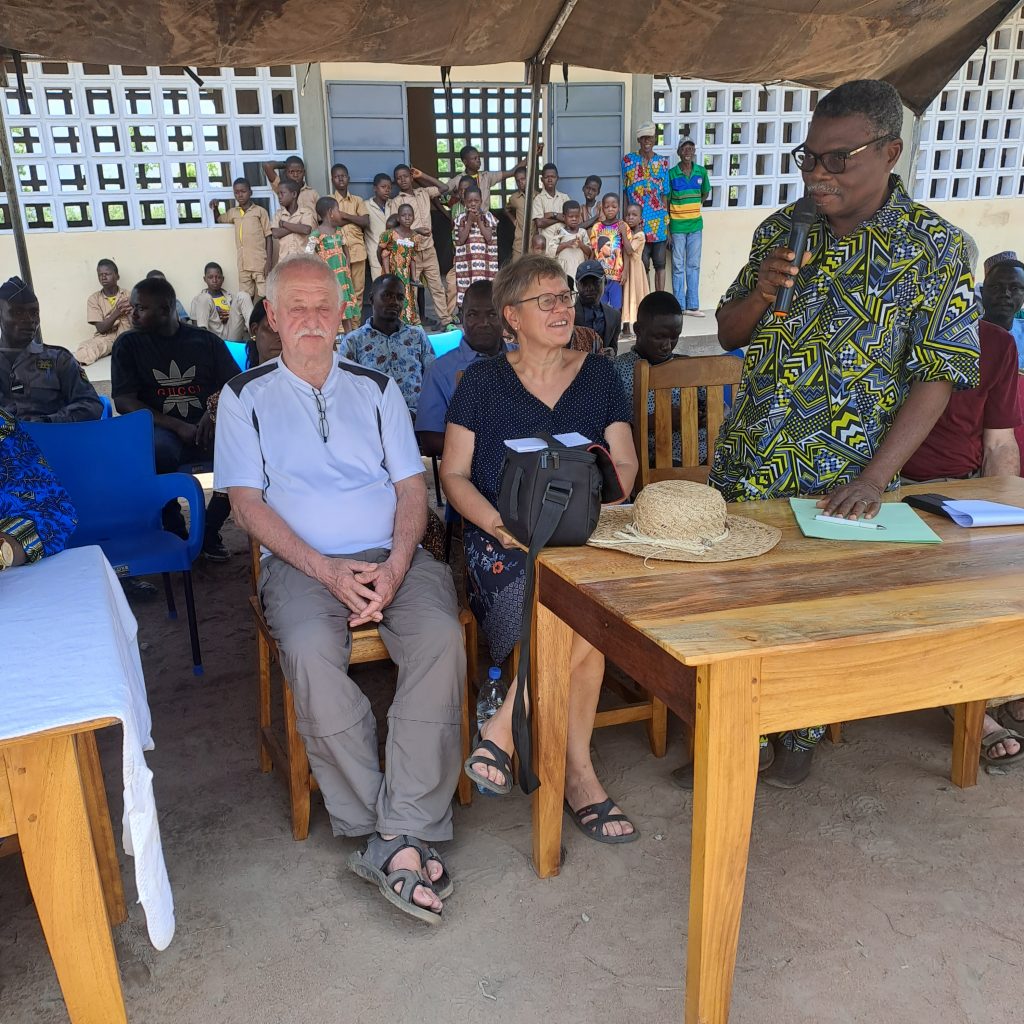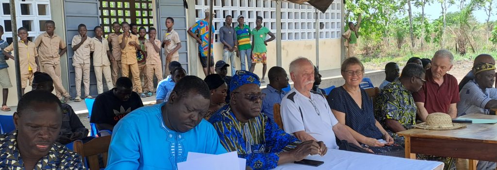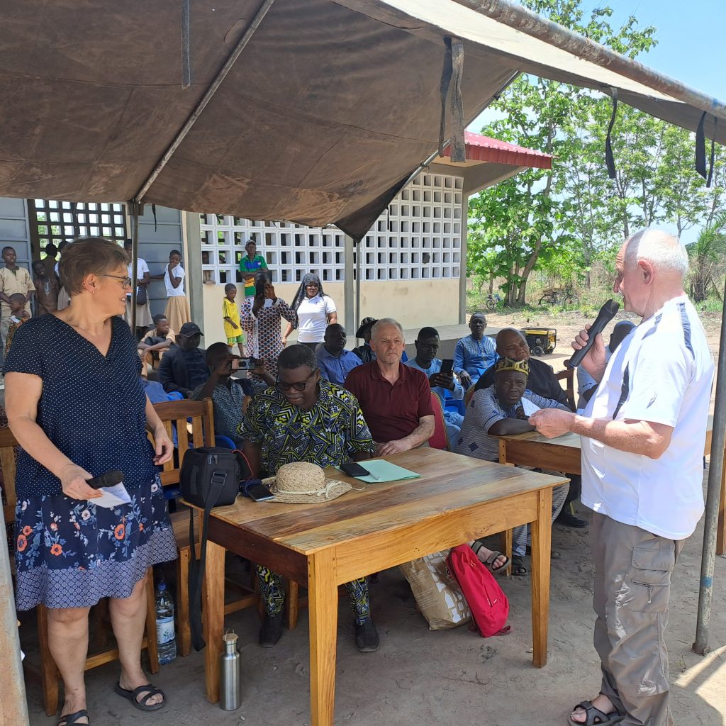 Leon Djiossou machte in seiner Rede deutlich, dass er die Bevölkerung zwischendurch motivieren musste um ihren Anteil an Eigenleistung ordentlich zu erbringen, was dann auch geschah. Er dankte vor allem Hilfe für Togo und den Sponsoren aus Deutschland für das große Engagement, denn vor allem für die Bevölkerung auf dem Land ist die Unterstützung sehr wichtig, denn nur wenn auch in den weit entfernten ländlichen Regionen entsprechende Schulen zur Verfügung stehen, wandern die Menschen nicht in die Stadt ab. Vor allem Mädchen haben nicht die Möglichkeit eine Schule in der Stadt zu besuchen und zählen somit häufig zur bildungsschwachen Bevölkerungsgruppe. Sehr deutlich brachte er auch zum Ausdruck, dass die Bevölkerung Verantwortung für das Gebäude hat und dafür sorgen muss, dass mit dem Gebäude sorgsam umgegangen wird.