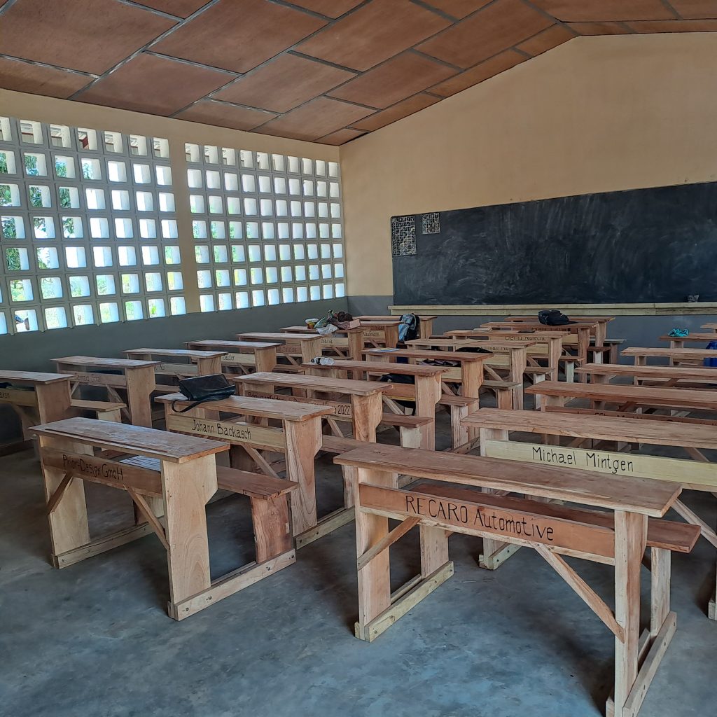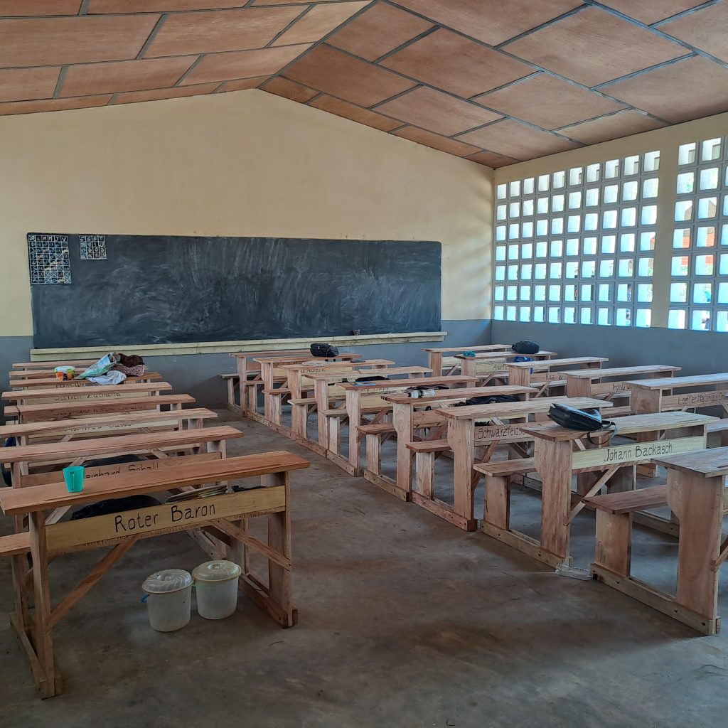 Der größte Teil der Finanzierung wurde von der Reiner Meutsch Stiftung „FLY & HELP“ mit Unterstützung von Brigitte Nussbaum und Bernd Albrecht getragen. Den Rest hat HILFE FÜR TOGO e.V. übernommen. Erst im Spätsommer 2022 wurde mit dem Bau begonnen. Es wurde ein Gebäude mit 4 Klassenräumen, ein Lehrerzimmer, ein Lagerraum und eine Latrine gebaut.