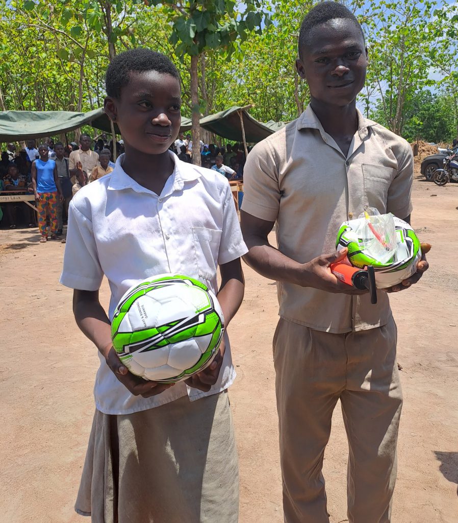 Stephan Dauser überreichte im Namen von Brigitte Nussbaum, an die Schüler 2 Fußbälle und eine Pumpe, und löste damit einen wahren Freudensturm aus.