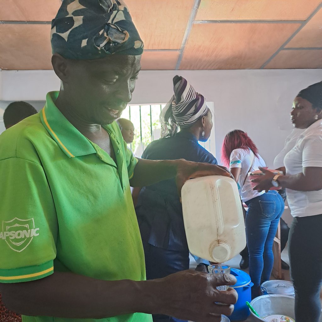 Bei viel Tamtam, wie man die afrikanischen Gesänge mit viel Trommelwirbel nennt, gibt es dann kühle Getränke, ein Festessen und natürlich wie immer bei großen Festen Sodabie und Palmwein, traditionel aus den Benzinkanistern.