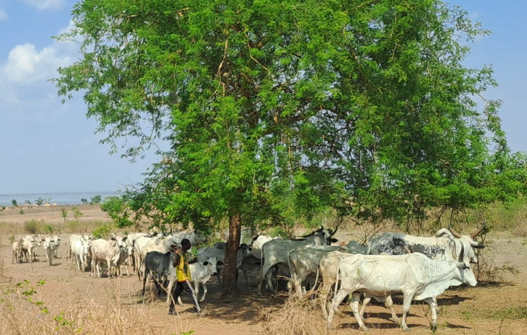 Es geht wieder über holprige und sehr staubige Pisten, bis wir in Atakpame sind. Viele Vieherden sind auf dem Weg zum Stausee wo sie getränkt werden.