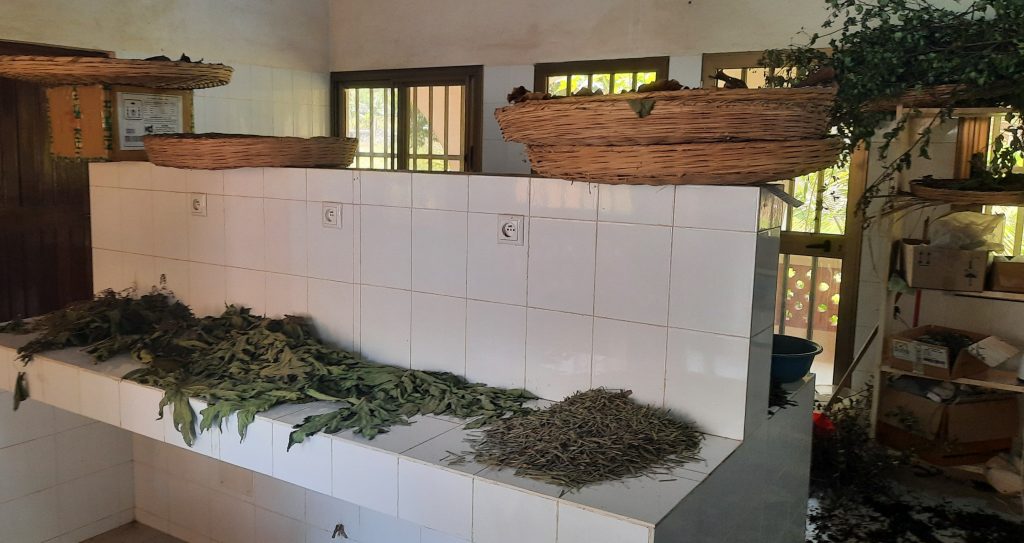 Die ganze Anlage ist wunderschön mit vielen Kräuterbeeten, Blumen, Sträuchern und Bäumen aus denen viele Arzneimittel hergestellt werden. Die Tee’s, Tinkture, Salben usw. werden dann in der großen Apotheke verkauft.