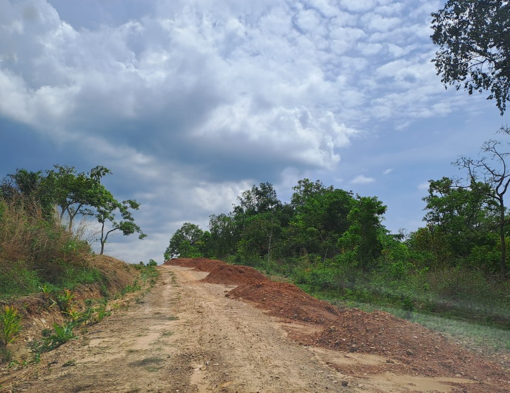 Auf dem letzten Teilstück vor Elavagnion liegen große Haufen von Latterit-Kies-Gemisch. Das zur Ausbesserung der Straße verwendet wird. Es gibt noch einiges zu tun.