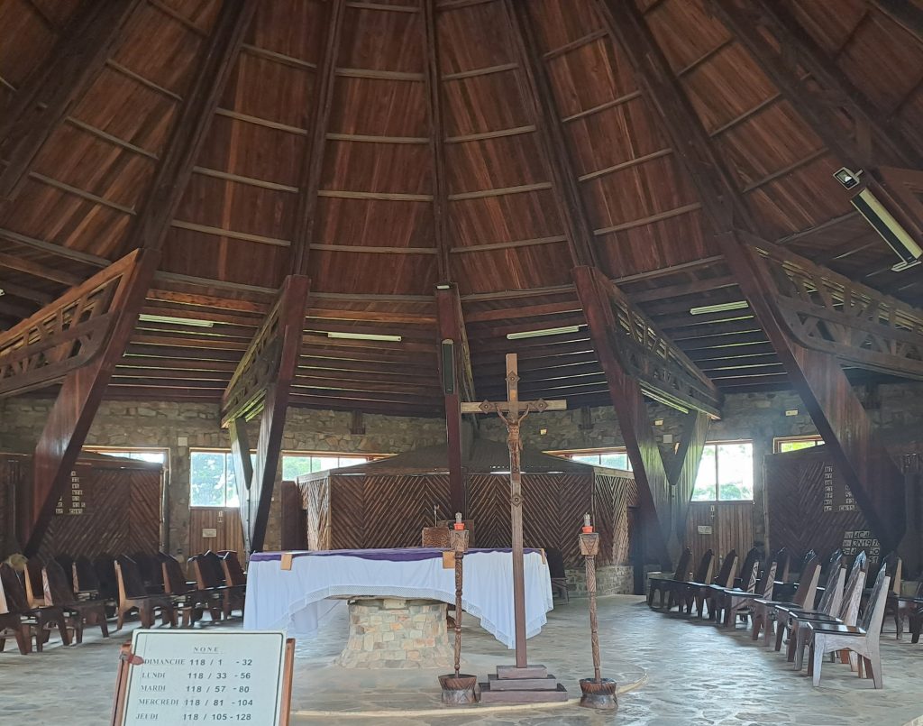 Jetzt wollen wir einen Sonntagsausflug in’s Monastere Dzobegan machen. Es ist ein Benediktiner Kloster, in dem wir auch schon oft übernachtet haben. Die Mönche bewirtschaften eine große Fläche, auf der sie einen Wald mit vielen verschiedenen Bäumen und einer Baumschule, eine Kaffeeplantage und Felder mit Bananen, Gewürzen und Kräutern bewirtschaften.