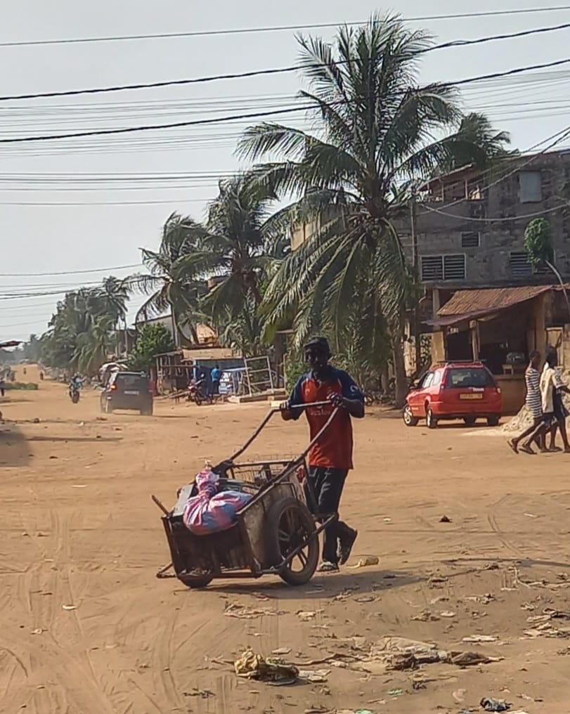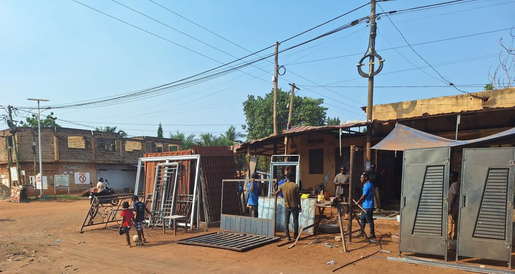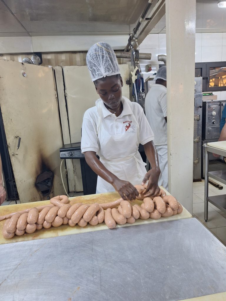 Gut gestärkt können wir dann in den Tag starten. Zunächst besuchen wir Koffi in seiner Metzgerei.Vor Jahren war er als Asylbewerber in der Schweiz und in Deutschland und hat während dieser Zeit eine Ausbildung zum Metzger gemacht.