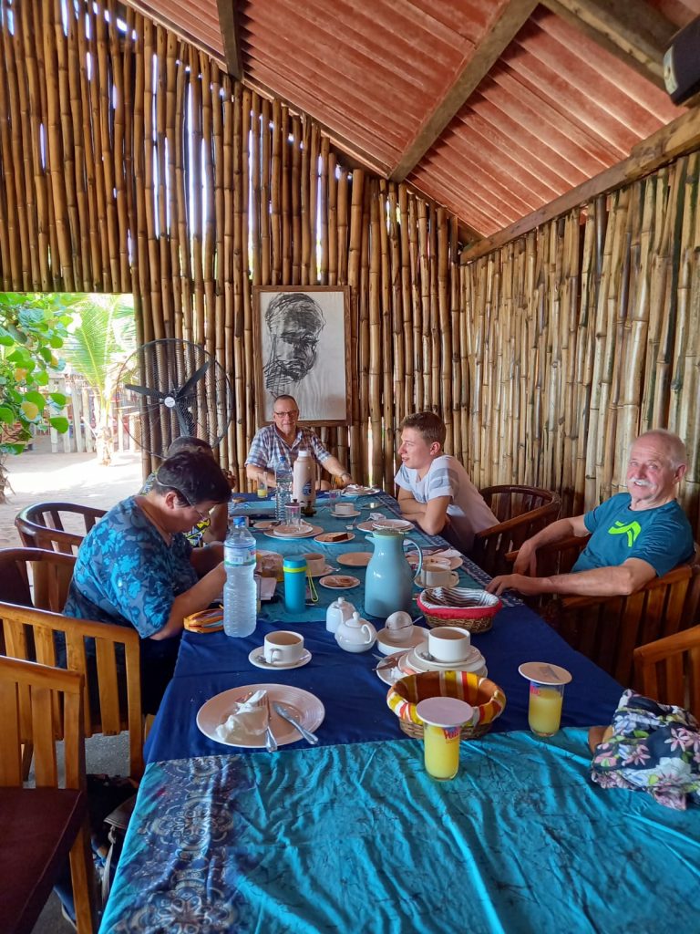 Den Abend lassen wir mit einem leckeren Essenm Restaurant ausklingen. Inzwischen ist auch unsere letzter Reiseteilnehmer – Roman aus der Schweiz eingetroffen. Nach angeregten Gesprächen genießen wir das Wiedersehn und ich schaffe es den Bericht von gestern und heute zu schreiben.