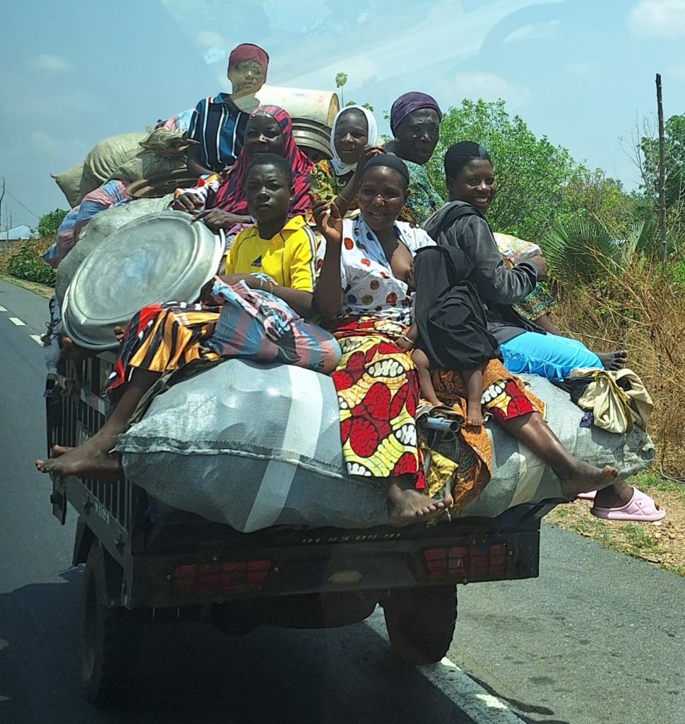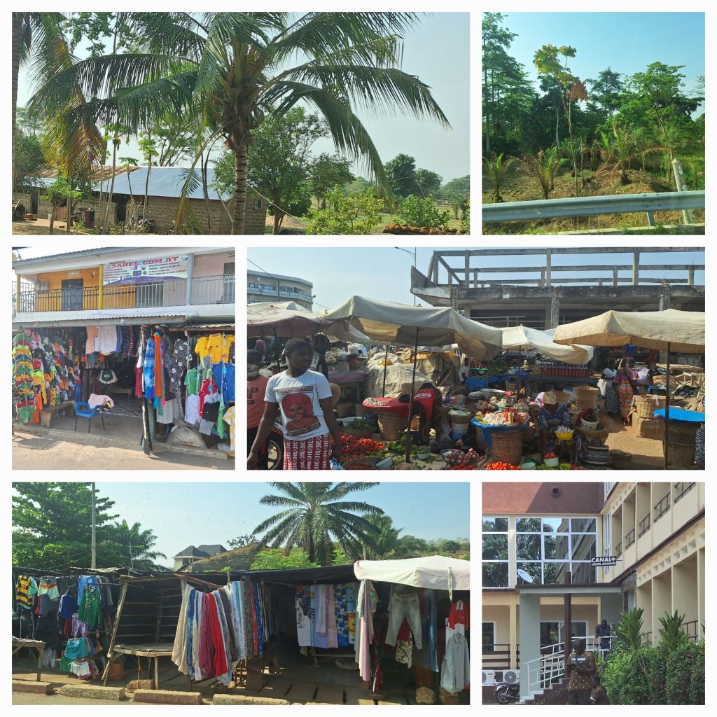 Es klappte auch fast pünktlich und um 7.15 Uhr ging es los. Zwei Stunden später hatten wir die 100 km und die 81 Schupfen (Bodenwellen) überwunden und waren in Atakpame zum Frühstück.