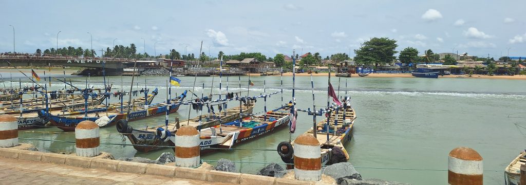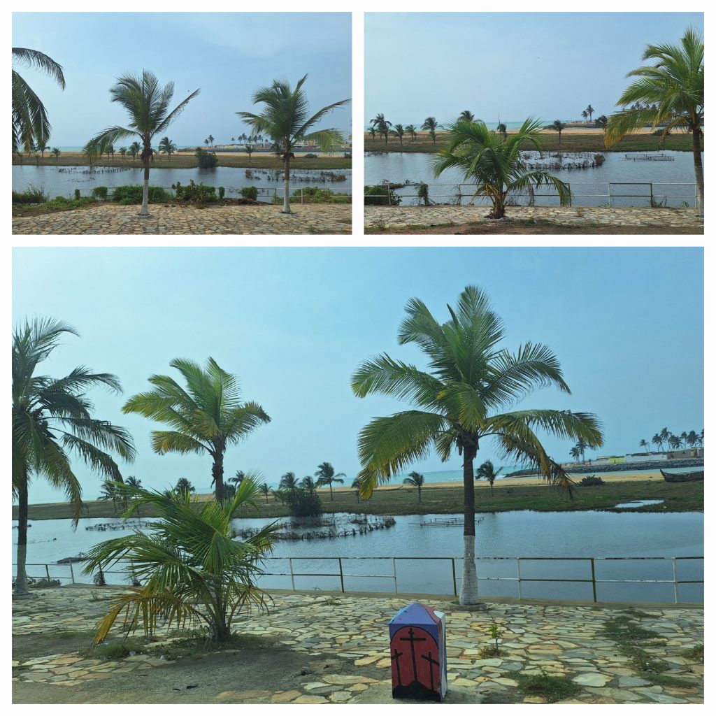 Bevor wir in’s Hotel zurückfahren, legen wir noch einen Stopp in Aneho, die achtgrößte Stadt Togos an der Grenze zu Benin ein. Sie liegt auf einer Düne erbaut, die den Atlantik und die Lagune voneinander trennt. In der Zeit von Oktober bis März gibt es hier sehr viele Schwalben, die hier den Winter verbringen. Ursprünglich gab es dort auch einen Sklavenmarkt. In der Kolonialzeit landeten dort die preusischen Soldaten um das Togoland zu erobern. Heute ein touristischer Platz, mit vielen Fischerbooten, schöner Aussicht und auch schön um etwas zu entspannen.