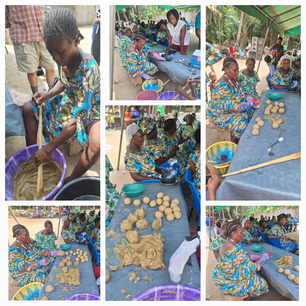 Kurz vor halb 12 brechen wir auf in Richtung Agbetiko am Mono, wo wir seit Jahren eine Frauengruppe bei landwirtschaftlichen Projekten mit Palmöl – und Seifenproduktion unterstützen.