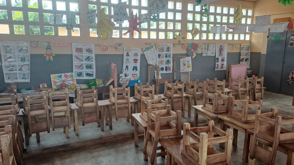 Da es ja Freitag Nachmittag ist haben die Erzieherinnen bereits begonnen zu putzen. Die Räume sind durchweg sehr liebevoll gestaltet. Zwei Erzieherinnen bitten mich, der Familie Salzer liebe Grüße aus zu richten. Sie seien sehr dankbar für die tollen Räume und auch für die Spielsachen, Bastelmaterial und Buntstifte, die wir immer mit dem Container mitschicken.
