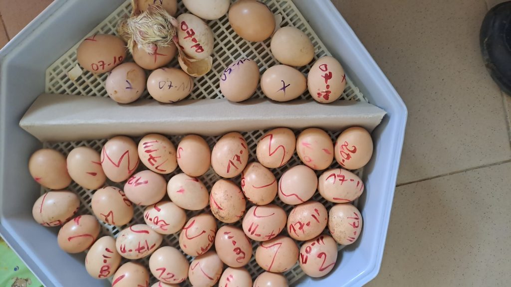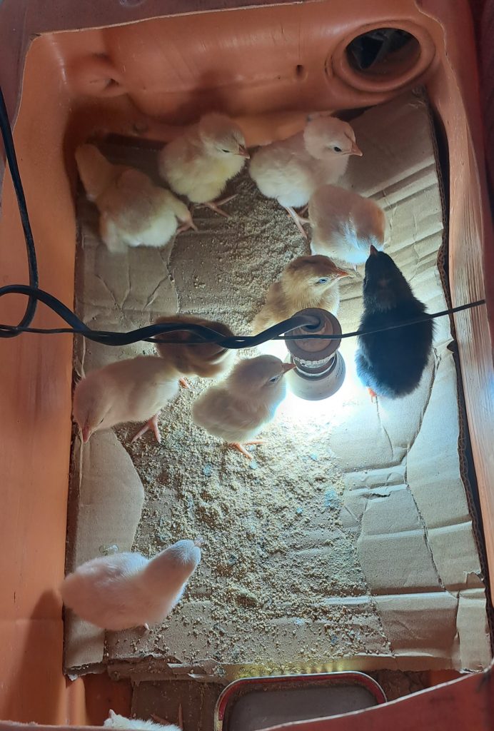 Die Koffer werden verladen und bevor wir endgültig Abschied nehmen zeigt uns Holali ihren Brutkasten für Kücken, wo gerade Kücken schlüpfen.