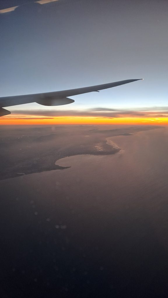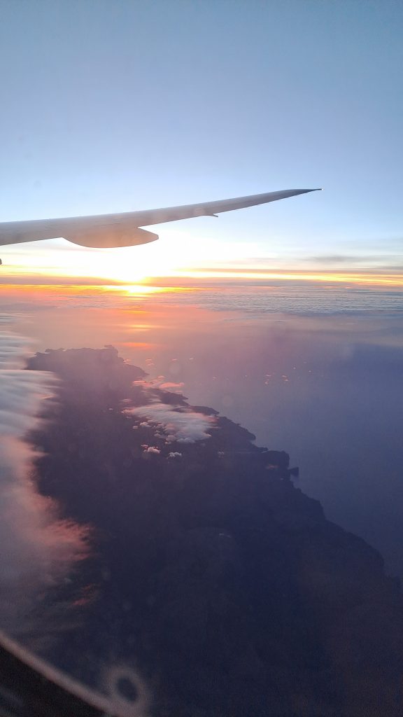 lnzwischen sind auch die Koffer gepackt….juhu bei mir so zeitig wie noch nie und es reicht noch für einige Stunden Schlaf und bevor es los geht kann Done sogar noch seine Futtermischung machen und die morgendliche Fütterung der Tiere erledigen. Pünktlich um 7.00 Uhr geht es los und der perfekte Fahrdienst vom Waldstetter Reisebüro holt uns wieder ab. Inge Heinzmann und Dieter Bolten kommen zum Schlatthof. Edith und Janny Bader holen wir ab. Das Wetter ist topp obwohl, es die halbe Nacht geregnet hat und die Fahrt läuft super. In Stuttgart sind Brigitte Nussbaum, Heidi und Norbert Strupf, sowie Stefan Rössle, Simon Kapfer und Marco Kapfer auch schon da. Das einchecken und die Gepäckaufgabe funktioniert reibungslos. Vor dem Abflug gönnen wir uns noch eine Tasse Kaffee und eine letzte schwäbische Brezel. Der Abflug verspätet sich um 20 Minuten, da das Flugzeug aus Paris nicht pünktlich kommt. In Paris läuft auch alles glatt, es sind wieder weite Wege zurückzulegen…aber wir haben ja genügend Zeit und heute auch richtig Glück….es gibt keine Gepäck Kontrolle mehr…fasst pünktlich hebt der Flieger ab…..bis auf einige Rumpler auf einer Holperstrecke ist es ein angenehmer Flug. Wir haben einen super Platz mit Ruhe und toller Sicht. Vor allem über dem Mittelmeer haben wir eine herrliche Sicht auf Mallorca und Allgerien.