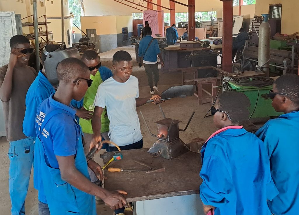 Außerdem kommt die Frage nach Schutzkleidung wie Schweißerbrillen, Hörschutz usw. Die Ausbilder der einzelnen Sektionen werden jeweils eine Liste erstellen, was am dringensten benötigt wird. Für die Ausbildungsstätten KochIn und im Maurerhandwerk wird in der staatlichen Berufschule gerade ein Ausbildungsplan für den theoretischen Unterricht erstellt. Bisher gibt es da keinen Leitfaden in Togo. George der Chef vom Macumba und Ausbilder der Lehrlinge in Küche und Restaurant bildet seit gut 10 Jahren sehr erfolgeich Lehrlinge aus, die dann auch sehr oft Arbeitsplätze in guten Hotels der größeren Städte bekommen. Insgesamt sind die Lehrlinge und die Ausbilder sehr zufrieden.