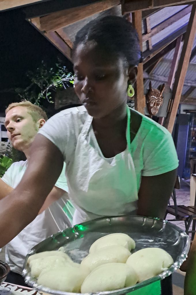 Zum Abendessen haben wir uns heute Fufu bestellt und sind begeistert von dem leckeren Essen. Einzig die scharfen Piment in der Soße machten uns zu schaffen. Auch heute sind wir wieder zeitig in unseren Betten…. noch haben wir einige gesundheitlichen Problemchen….