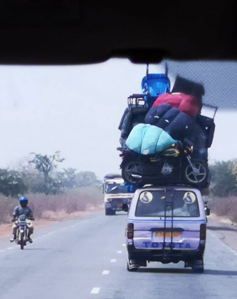 Die Straßenan sich sind gar nicht so schlecht, aber viele eingebauten Straßenschwellen Bremsen die Autos fast nach jedem km aus. Außerdem ist unheimlich viel Verkehr und es ist kurios was es alles zu sehen gibt, an übergroßen voll bepackten Fahrzeugen.