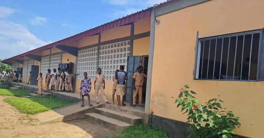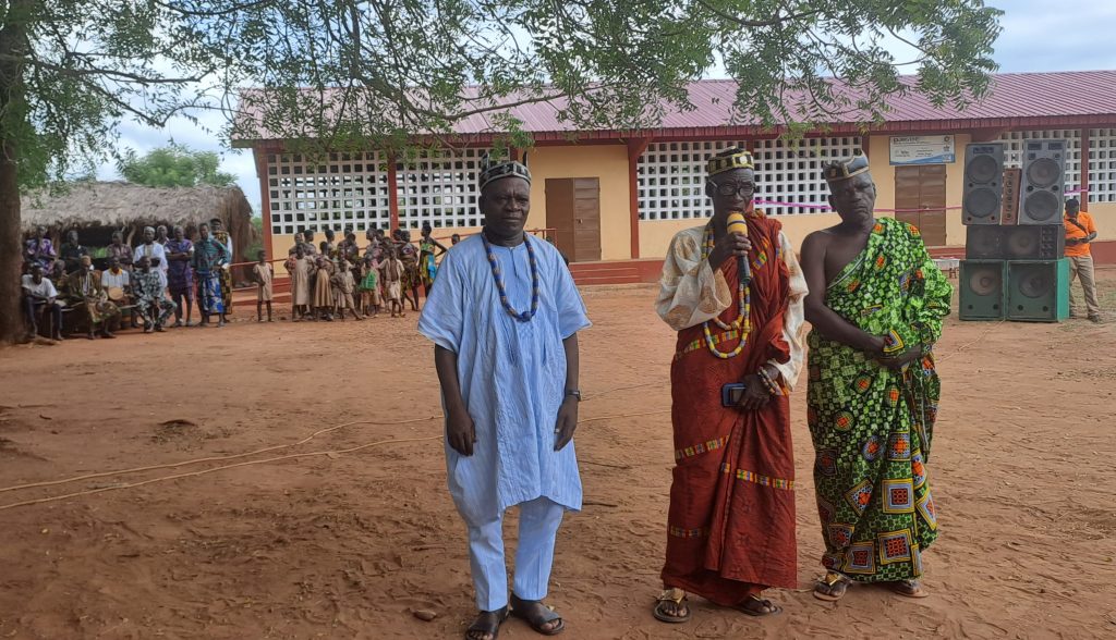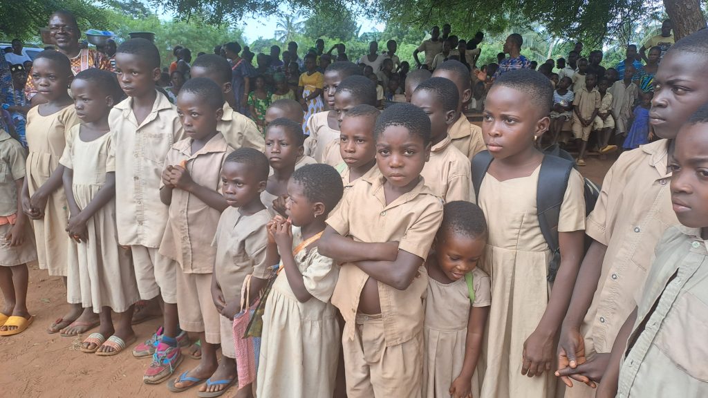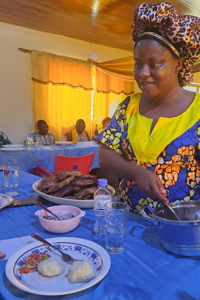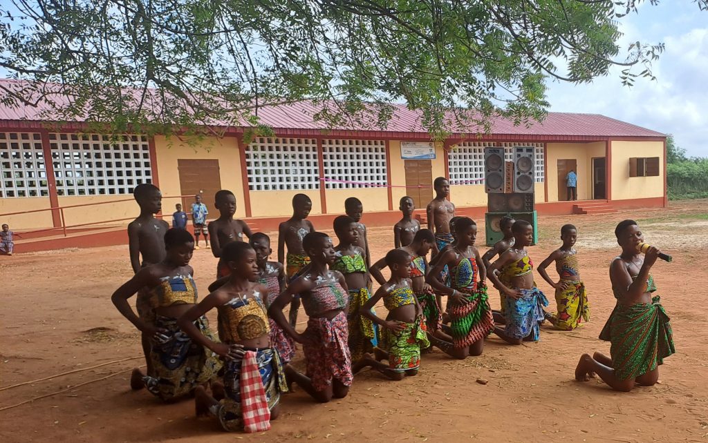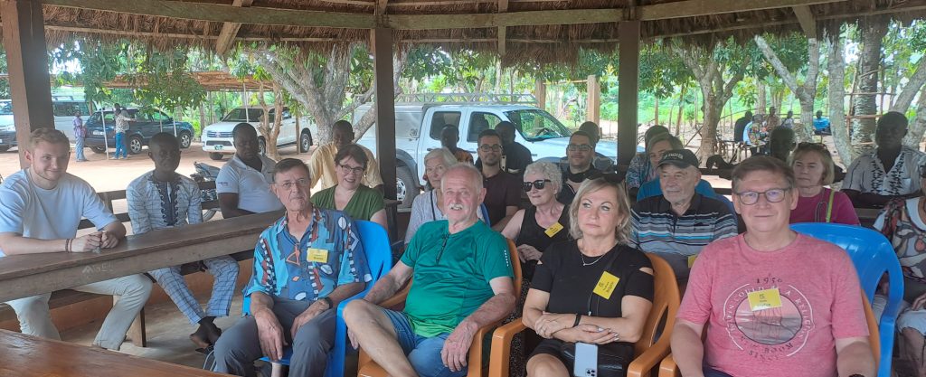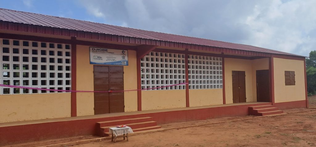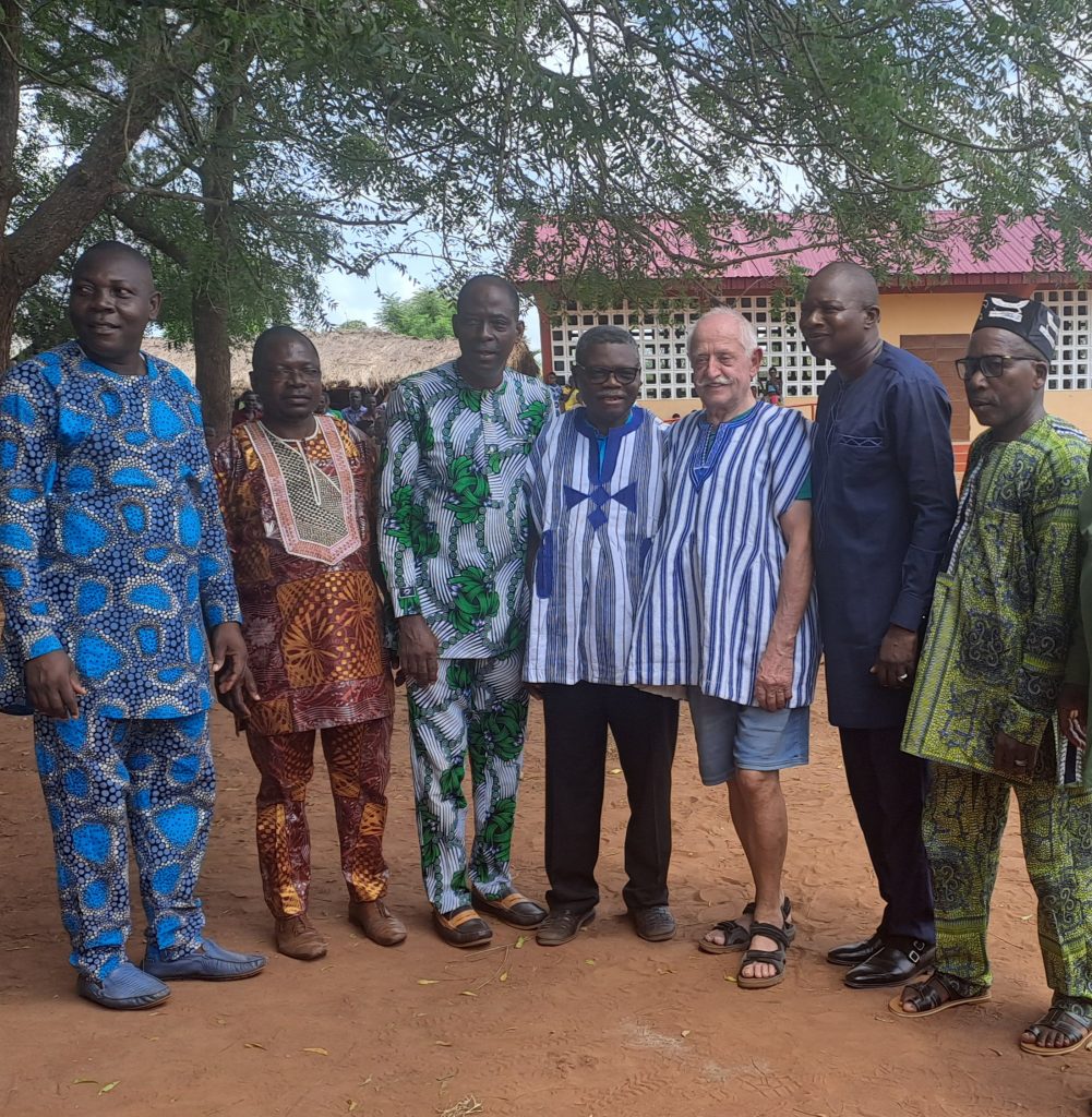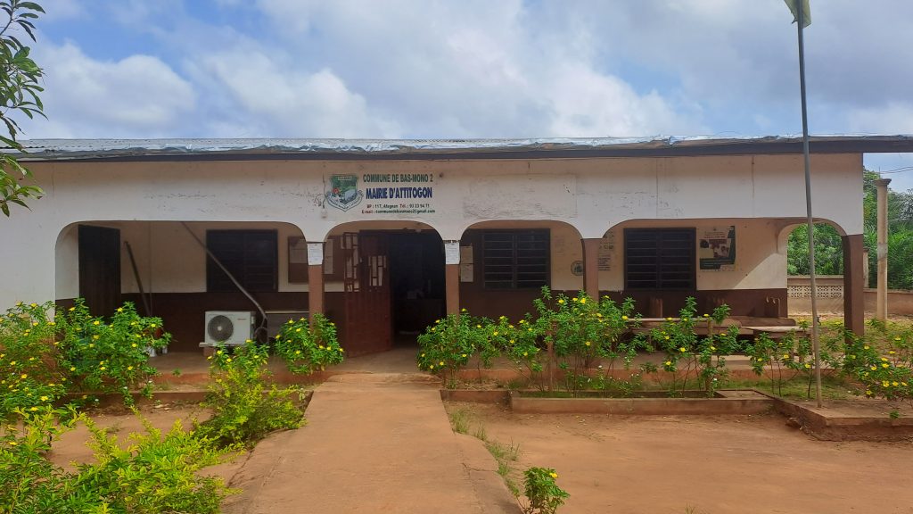 Heute hieß es wieder früh aufstehen. Da wir vom Hotel zum Haus von Leon mit dem Auto ungefähr 45 Min. brauchen, ist bereits um 7.00 Uhr Abfahrt. Victorine und ihr Team haben schon ein leckeres Frühstück vorbereitet und danach starten wir sofort wieder durch. Heute steht die Einweihung der Schule in Djigbe auf dem Programm. Die Finanzierung wurde von Fly & Help und Hilfe für Togo e.V. übernommen. Auf dem Weg zu dem Dorf haben wir einen kurzen Stopp im Rathaus von Djigbe eingelegt und wie es in Togo erwartet wird, einen Antrittsbesuch gemacht.