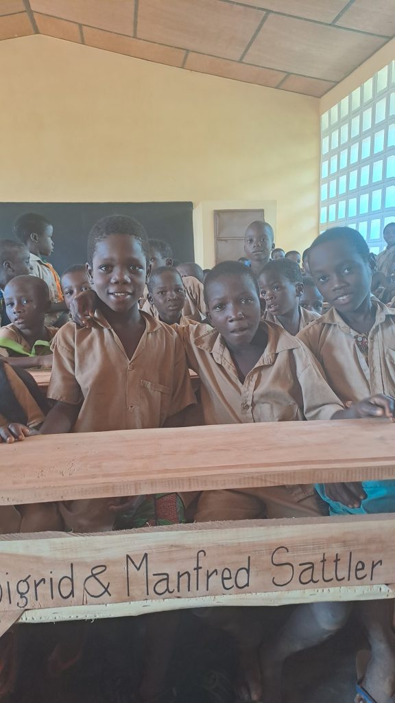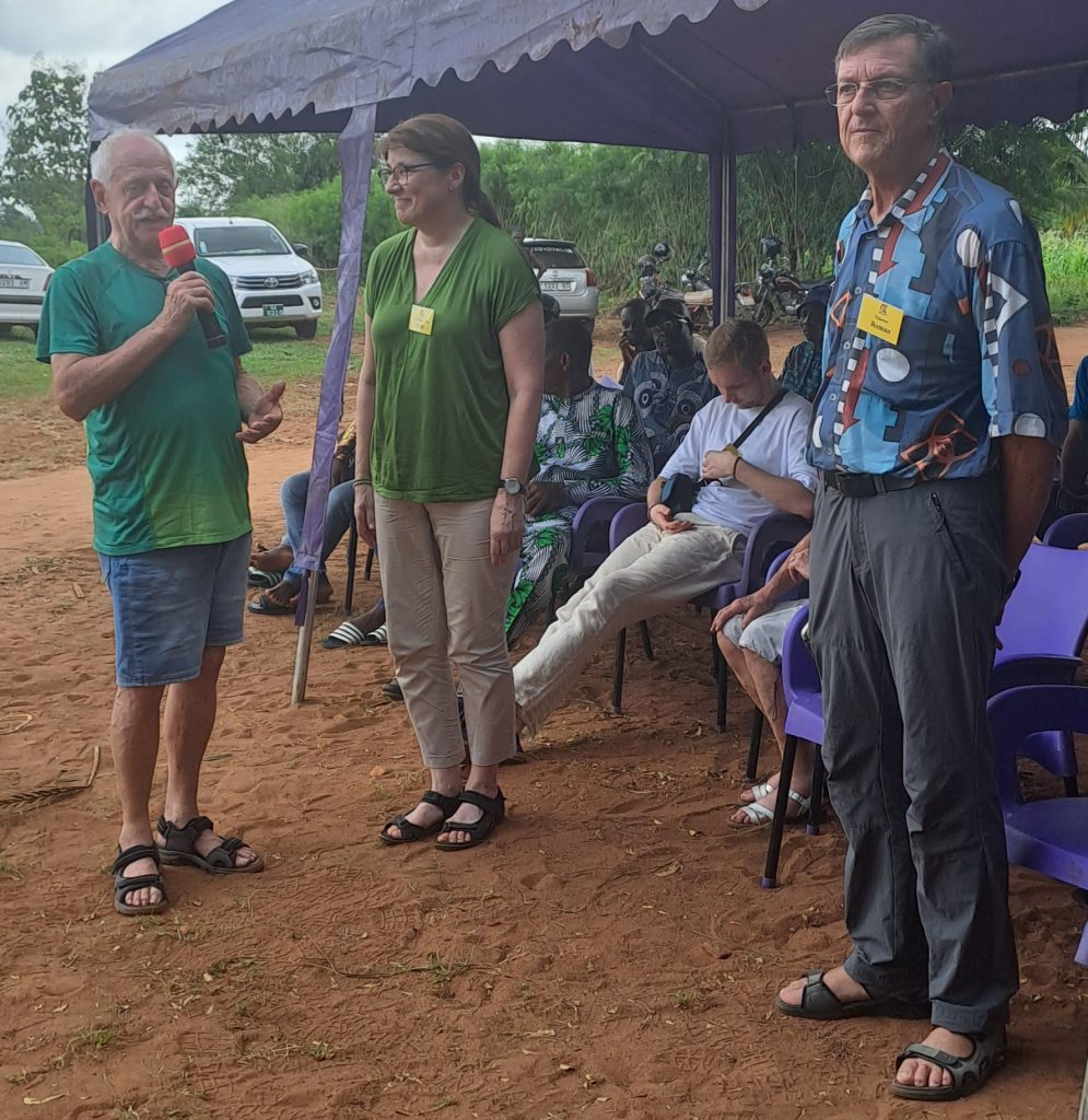 Nach einem kurzen Grußwort des Bürgermeisters fahren wir sofort weiter in das etwa 5 km entfernte Dorf Djigbe, in dem wir im März den Grundstein für ein neues Schulgebäude gelegt haben und danach sofort mit dem Bau begonnen wurde.