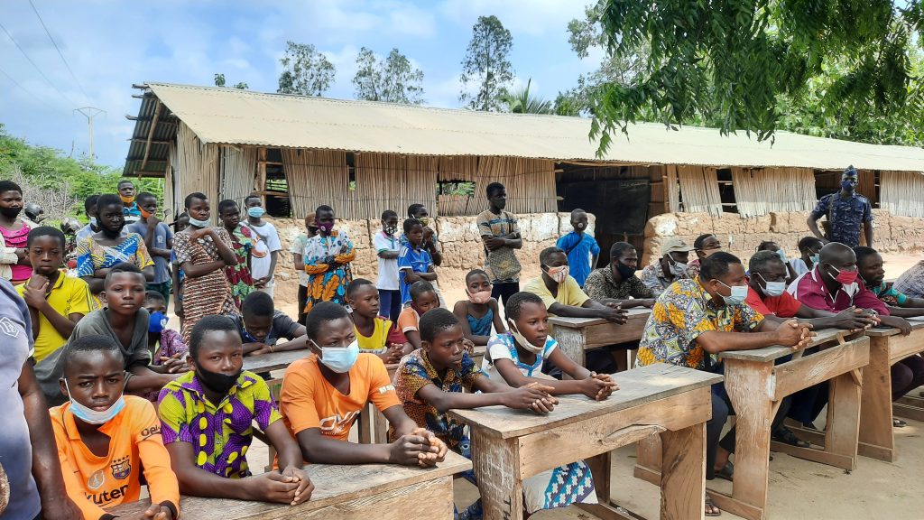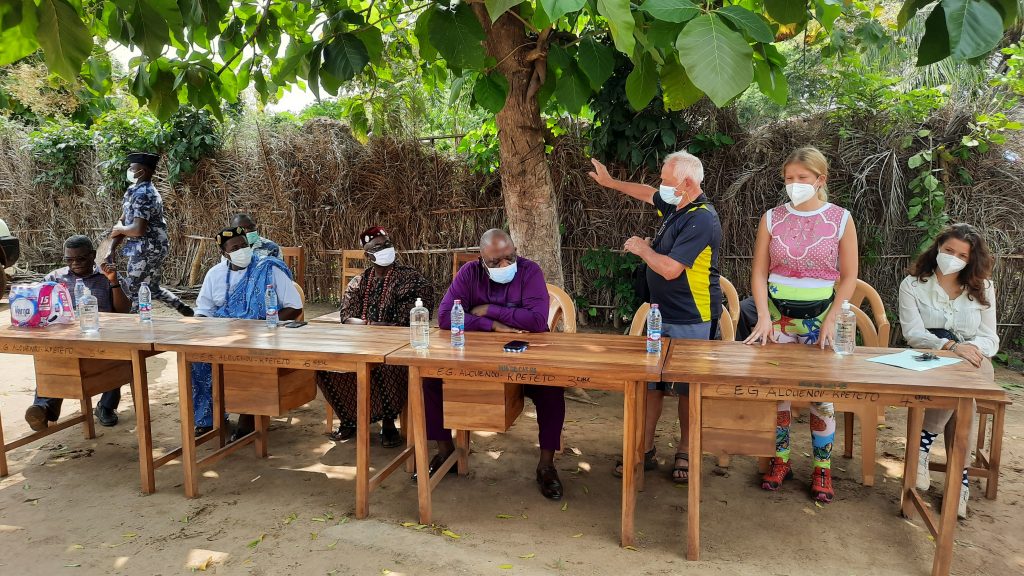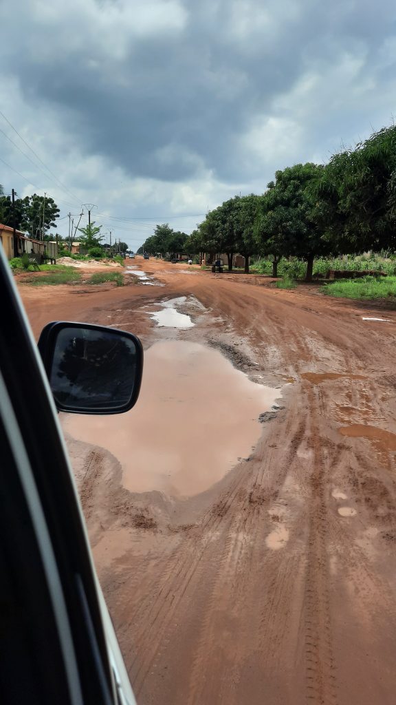 Anschließend fahren wir weiter nach Agbetiko zum Haus von Leon und Victorin. Die Strecke ist auch wieder ganz schön anstrengend, da es viele Löcher in den Straßen gibt und die Piste durch den Regen teilweise sehr rutschig ist.