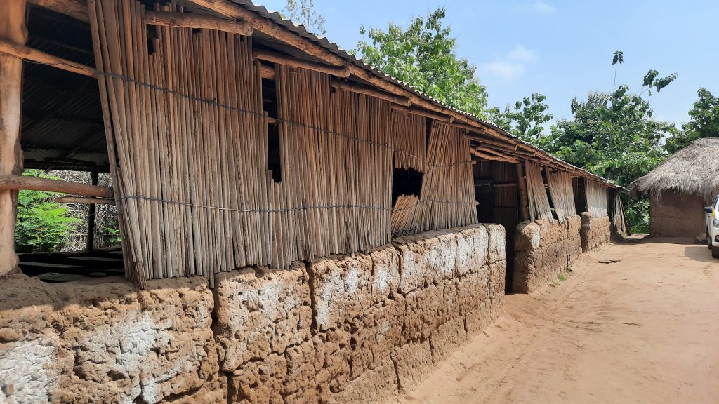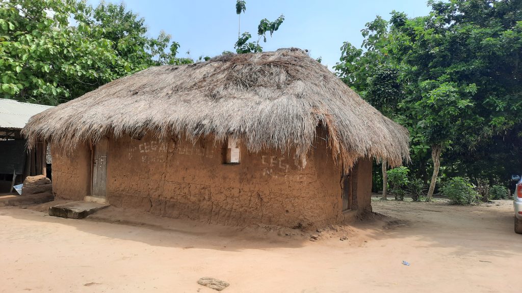 In Alenou haben wir für Herbst den Bau eines College (Realschule) geplant. Die bisherige Schule besteht aus einem Lehmbau mit 4 Klassenzimmern, ein einfaches Apatam, das als Lehrerzimmer genutzt wird und einem kleinen Lehmhaus, das als Lernmittellager dient