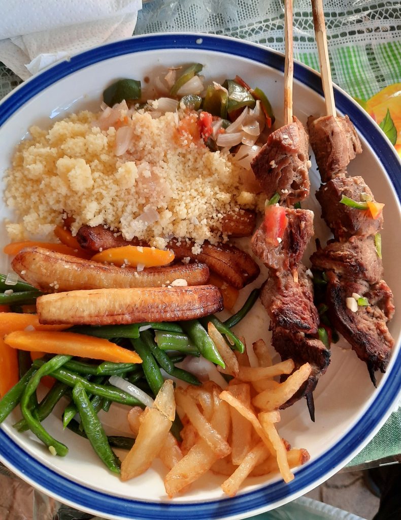 Es gibt ein richtig leckeres afrikanisches Abendessen, das wir nach dem anstrengenden Tag genießen.