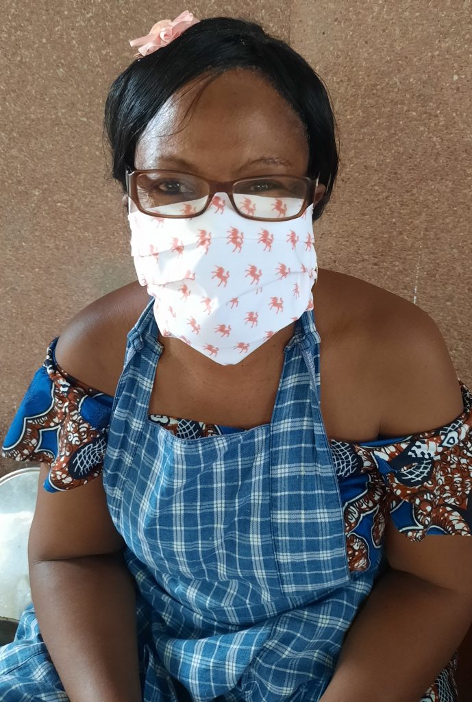 Als Dankeschön verschenken wir an die Frauen Mundschutzmasken, die uns von der Stadt Gmünd zur Verfügung gestellt wurden. Der größte Teil kommt mit dem nächsten Container nach Togo. Die Frauen sind begeistert, denn in Togo ist das Tragen einer Mundschutzmaske überall Pflicht und wird sehr streng kontrolliert. Schon in den letzten Tagen haben wir immer wieder Mundschutzmasken verschenkt. So z.B. auch an die Frauen von der Palmöl – Seifen Produktion. Immer wieder sind alle überglücklich, denn das Tragen einer Mundschutzmaske ist oberste Pflicht und der Kauf einer Maske ist für viele sehr schwierig bzw. kaum erschwinglich . Durch Spenden werden im nächsten Container ca. 50 000 Mundschutzmasken nach Togo geliefert. Das wird eine Freude für die Menschen in Togo….