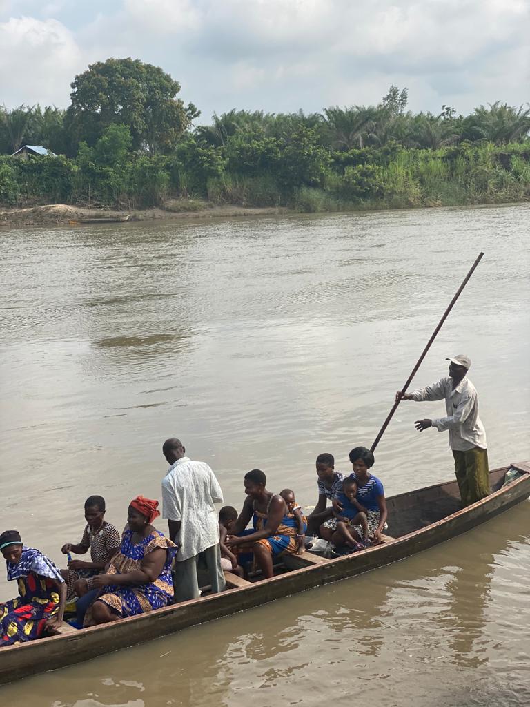 Bei unseren Reisen gehört es dazu, daß wir mit dem Einbaum über den Mono nach Benin fahren um am anderen Flussufer frischen Palmwein zu trinken. Für den Palmwein beginnt die Saison aber erst in Kürze und so müssen wir auf das köstliche Getränk verzichten.