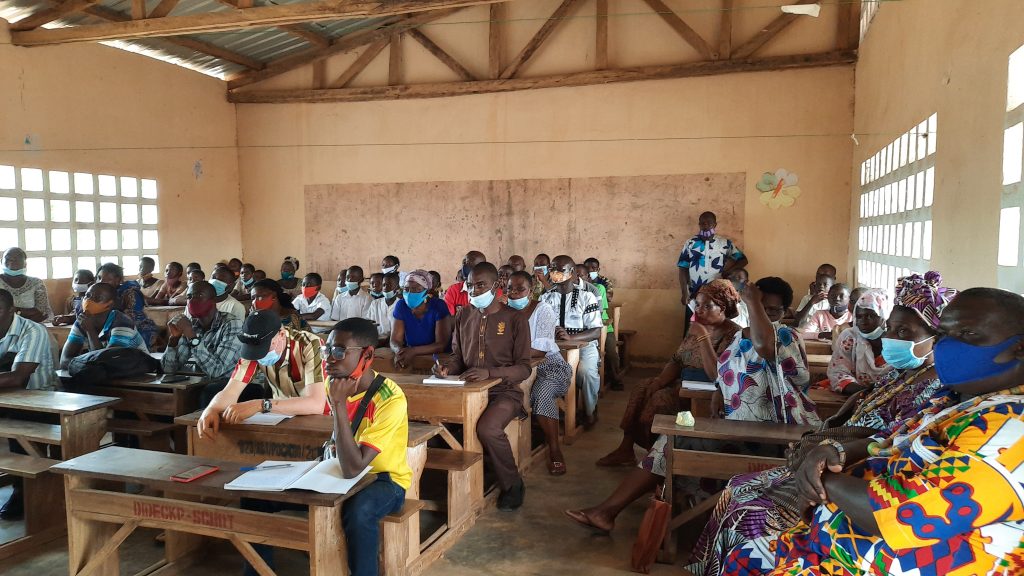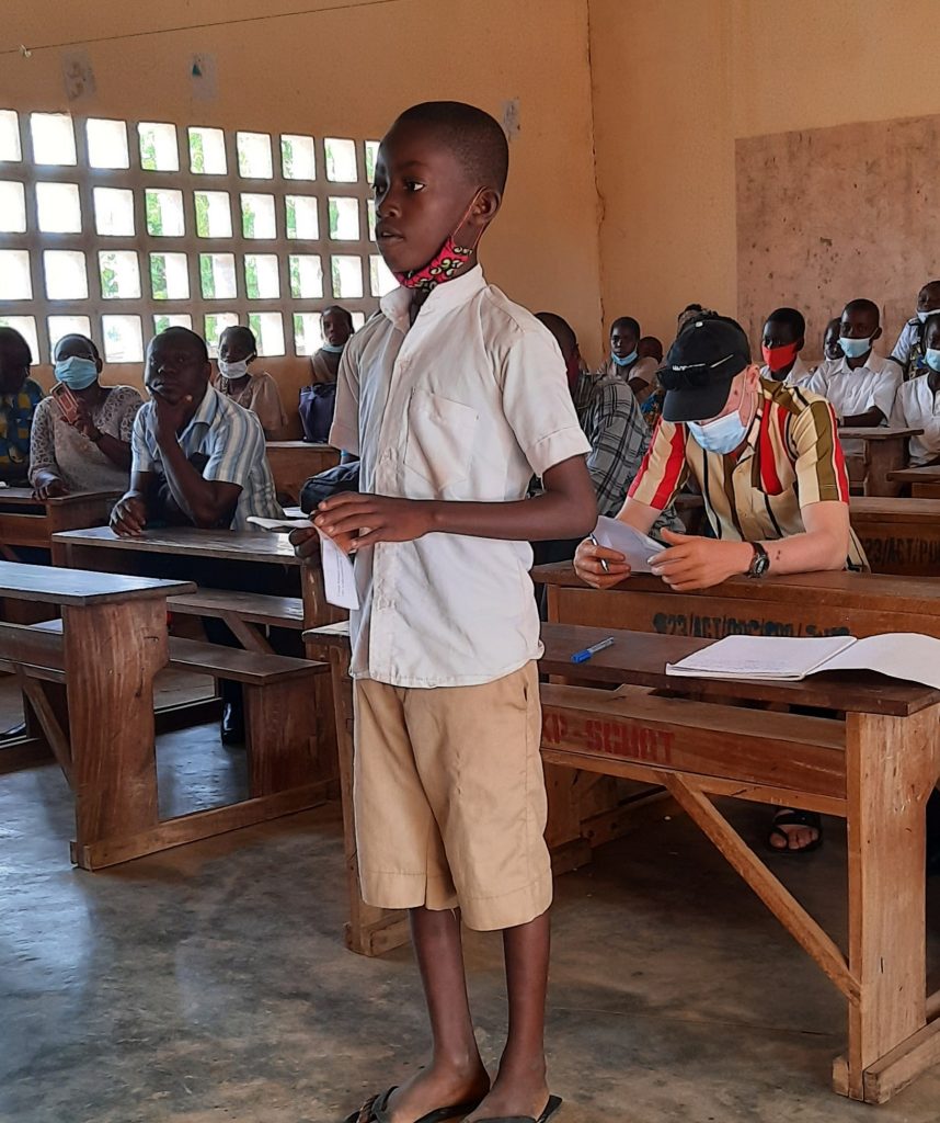 In einem Klassenzimmer diskutieren wir mit der Schulverwaltung, den Lehrern, den Elternvertretern und den Schülervertretern. Pfarrer George fungiert als Übersetzer deutsch/ französisch und Ewe. Alle freuen sich auf den Neubau und die Zusammenarbeit mit uns. Der Dorfchef versichert uns, daß er alles daran setzt, daß die Dorfbevölkerung ihren Einstz bringt.