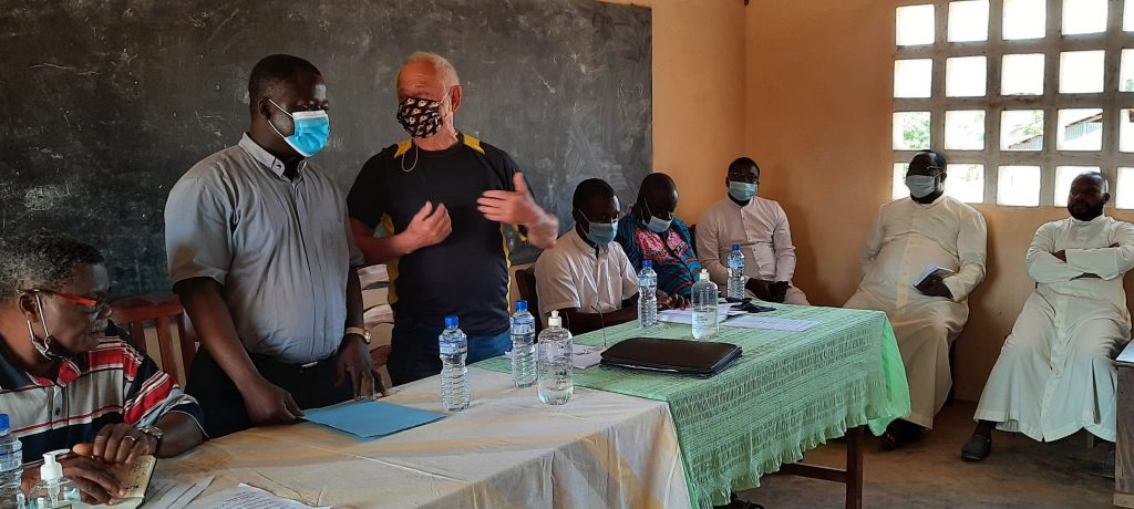 Vor dem Abendessen diskutieren wir dann noch mit Holali und Pfarrer George über die landwirtschaftlichen Projekte in Agbetiko.
