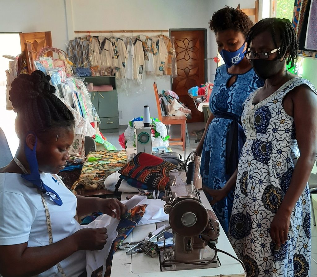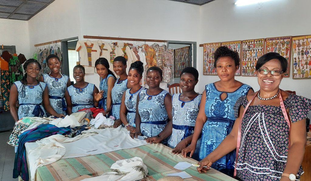 Anschließend besuchen wir die Schneiderei. Victorin möchte unsere Maße nehmen, damit die Mädchen uns etwas nähen können. Neun Mädchen werden momentan zur Schneiderin ausgebildet. Die Räumlichkeiten sind sehr schön geworden und unter den Mädchen herrscht eine gute Stimmung. Victorine wird bei der Ausbildung der Mädchen von einer ausgelernten Schneiderin unterstützt.