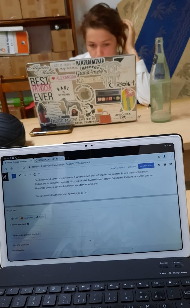 …und im Büro erstellen Afie und Arafat gerade die Unterlagen, für die Endabrechnung der Schule in Xletivikondzi.