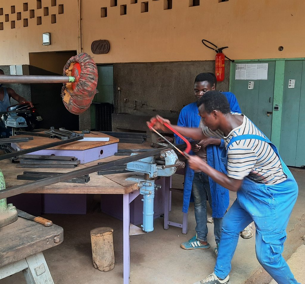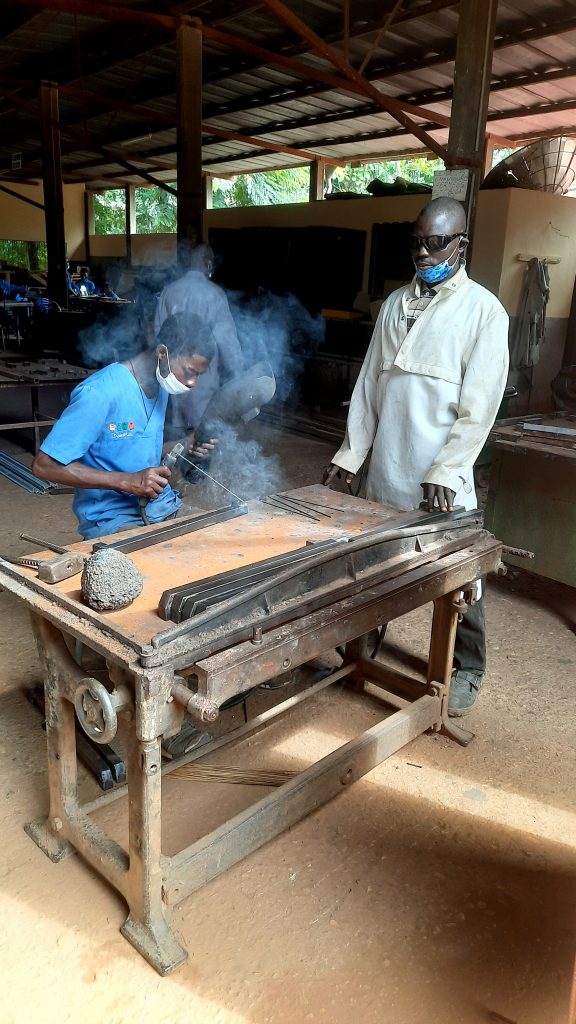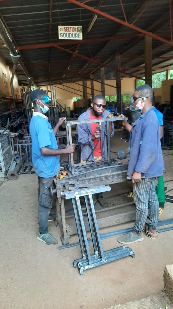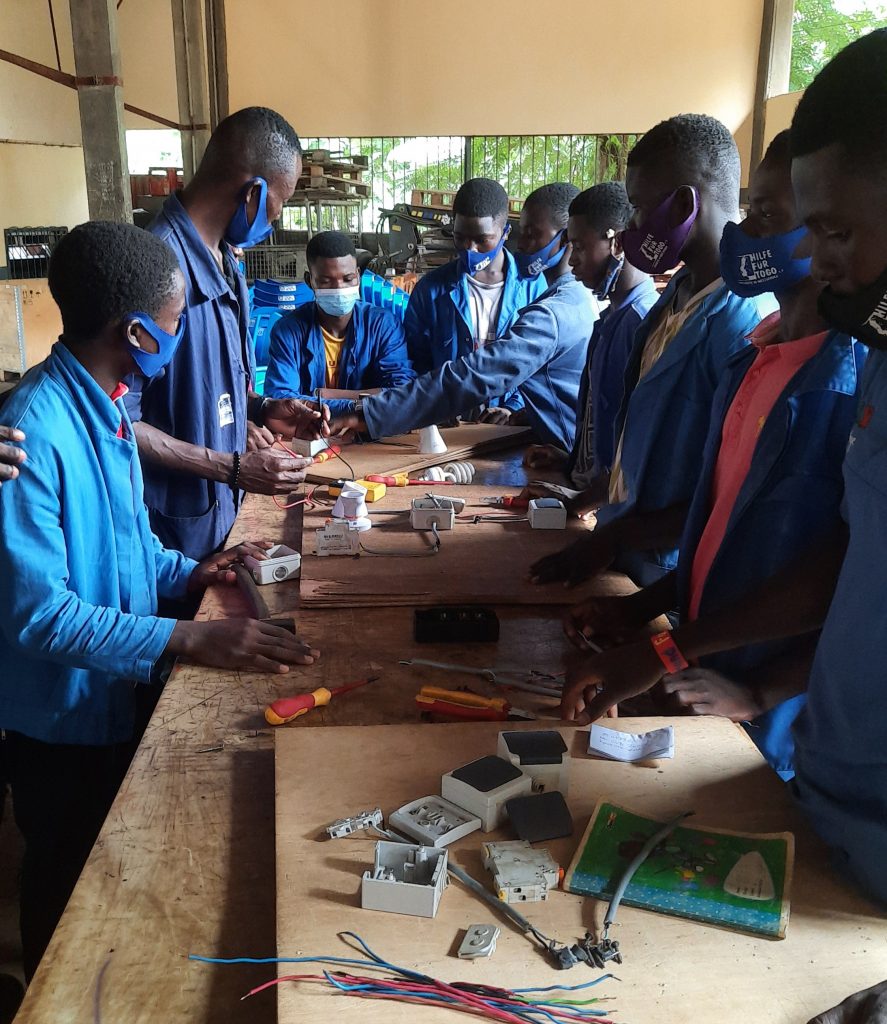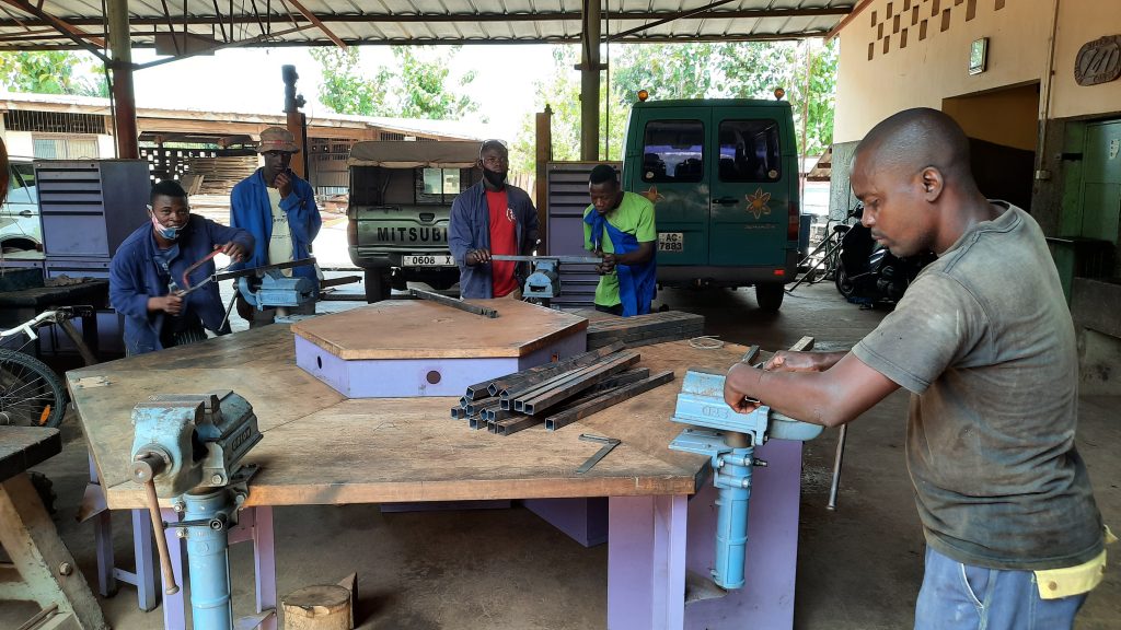 Wir haben im ABCN das duale Ausbildungssystem eingeführt. In drei Jahren erlernen die Aprentis (wie man die Azubis in Togo nennt) einen handwerklichen Beruf. Zusätzlich besuchen sie das CRETFP, eine staatliche Schule, in der unmittelbaren Nachbarschaft zum ABCN, wo sie dann mit der Prüfung zum Techniker abschließen. Die Aprentis erzählen uns immer wieder wie stolz sie sind, mit 2 Abschlüssen in der Tasche das ABCN zu verlassen. Bei den Prüfungen im CRETFP machen die besten Abschlüsse meistens die Absolventen aus dem ABCN.