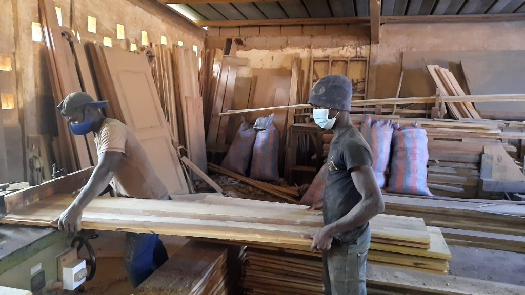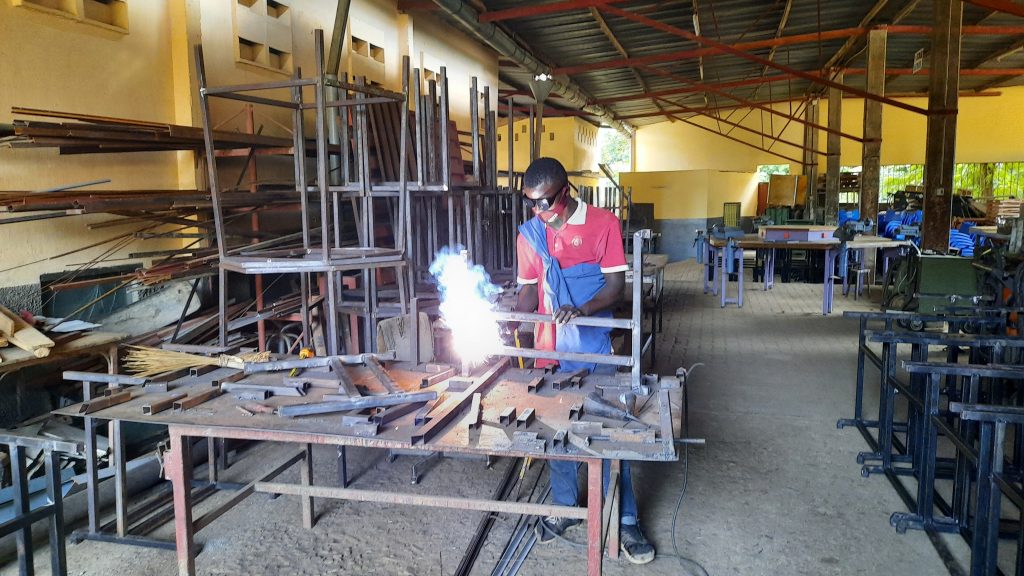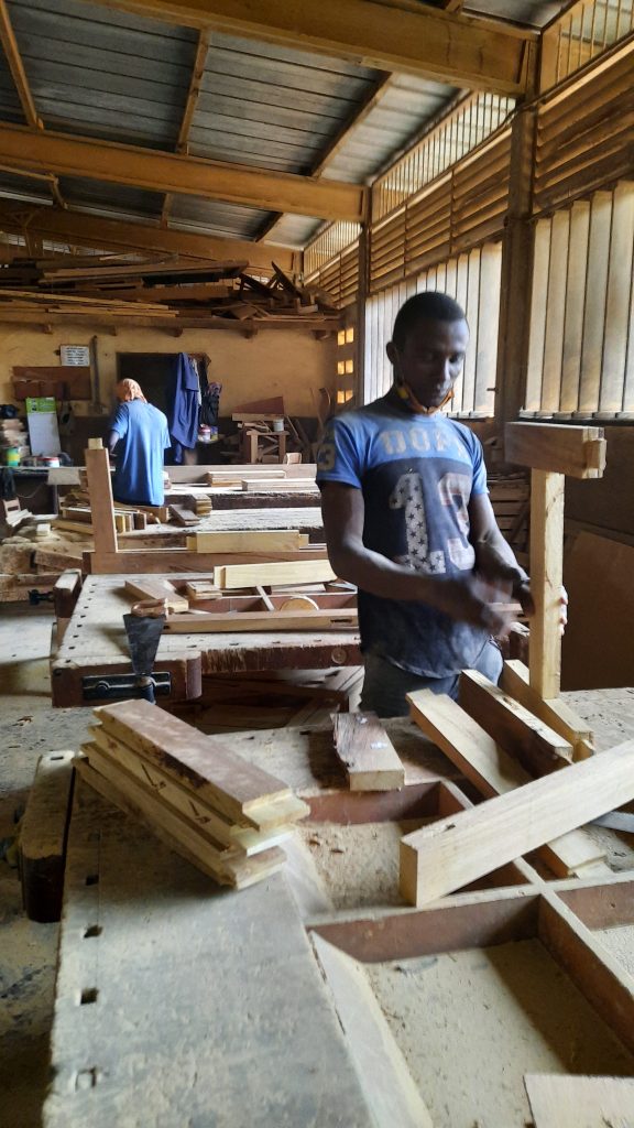 In der Schreinerei werden vor allem Möbel und Schultische hergestellt. Im Moment werden für die technische Uni in Kara Tische, Stühle und Labortische hergestellt. Dabei handelt es sich um einen sehr großen Auftrag mit über 100 Tischen.