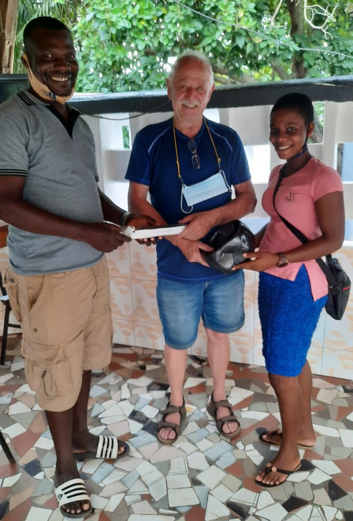 Victorine und Arafat haben wir über 100 Taschenrechner übergeben. Sie wurden von den Lions in Aalen gespendet und werden für den Unterricht im Bereich Finanzbuchhaltung verwendet. Arafat bedankte sich im Namen der Azubis und sagte, daß sie die Taschenrechner sehr gut gebrauchen können und sich die Schüler sicher sehr freuen.