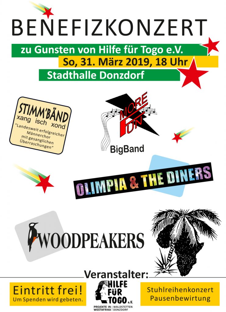 Bevor es richtig los geht mit den ersten Berichten aus Togo auf diesem Blog noch ein wenig Werbung in eigener Sache. Am Sonntag, den 31. März 2019 findet in der Stadthalle Donzdorf ein Benefizkonzert zugunsten unserer Projekte in Togo statt. Wir konnten wiederum hochkarätige Künstler aus der Region gewinnen, die darüber hinaus auch noch auf ihre Gage verzichten.